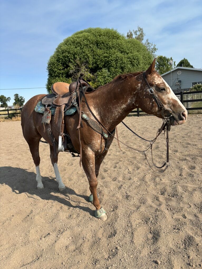8 year old Registered POA with papers Hennessy has a very smart and friendly personality. She loves attention and gets along with other horses. I have been running her in jackpot and Highschool rodeos for about 2 years and she does very well. She runs barrels and poles, but stronger in the poles with consistent times of 21-20s. She places in the 2D barrel in jackpots. She would make a great step up horse. We take her up the mountains and she could go for days! She is very willing to do anything that is asked and I’m confident she could do anything someone would like to teach her. She loads and haul perfect in the trailer. Ties well, and never has problems with the farrier. She has never had any sort of health issues/injuries.