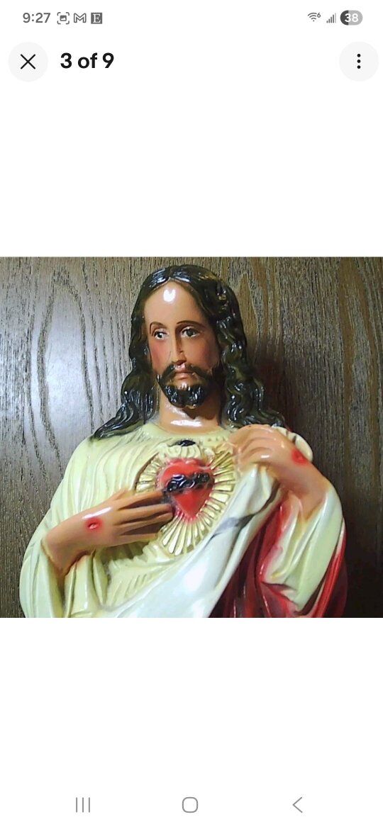 VenmoVTG Mexican Sacred Heart of Jesus Statue 25" Clay/Ceramic Handpainted 1960's.