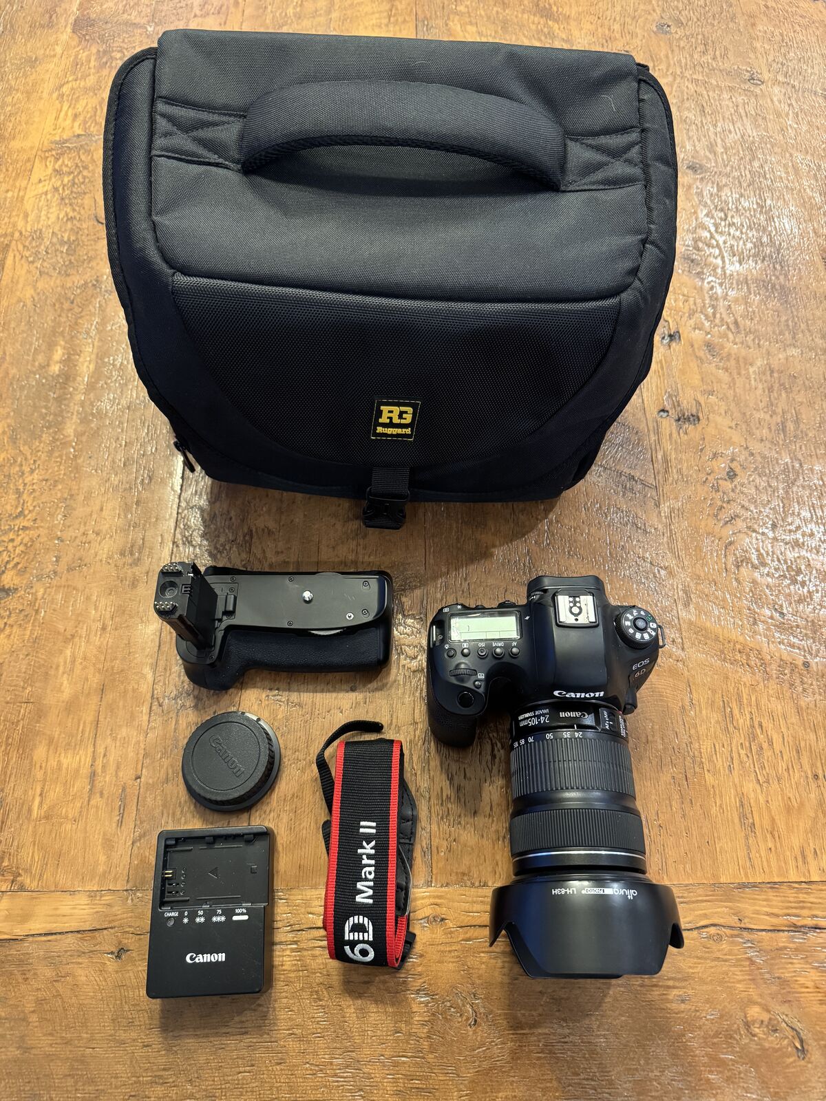 ZelleI'm selling my full frame Canon 6D Mark II camera along with a EF 24-205 F3.5-5.6 IS STM lens. I've been really happy with this camera. I love the full frame for impressive landscape images. I also appreciate the GPS tagging which, strangely is ommitted on more expensive models.