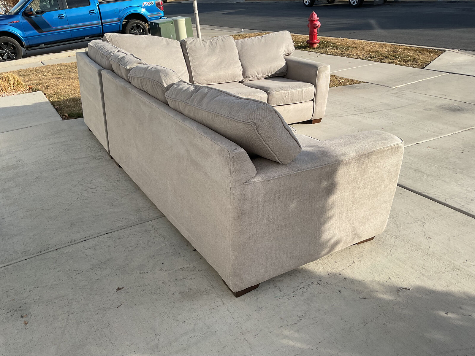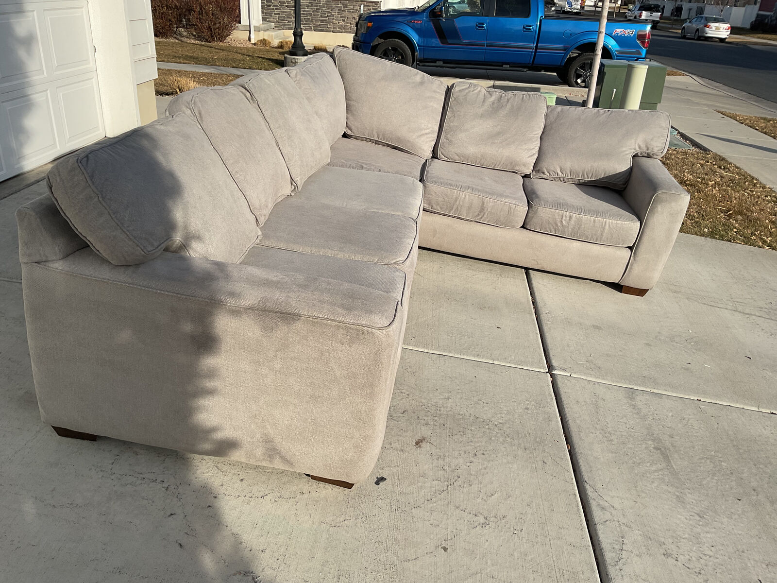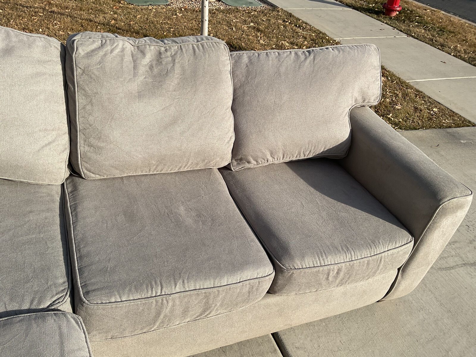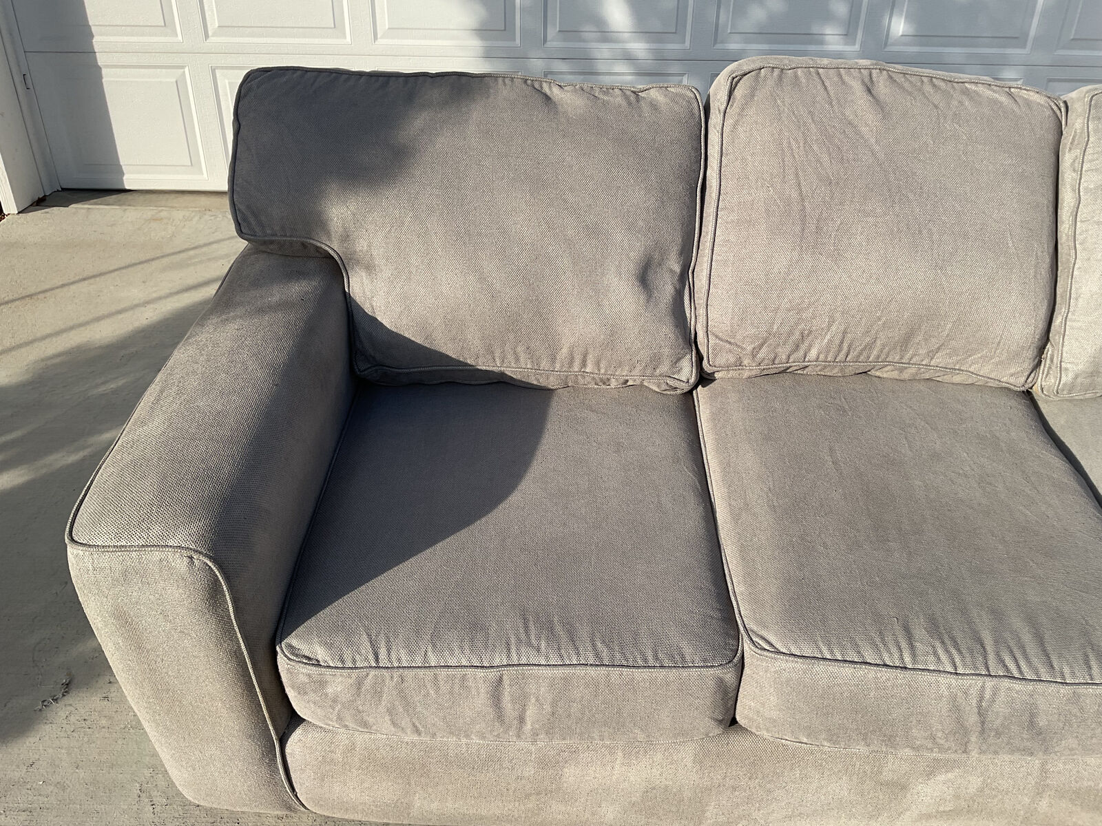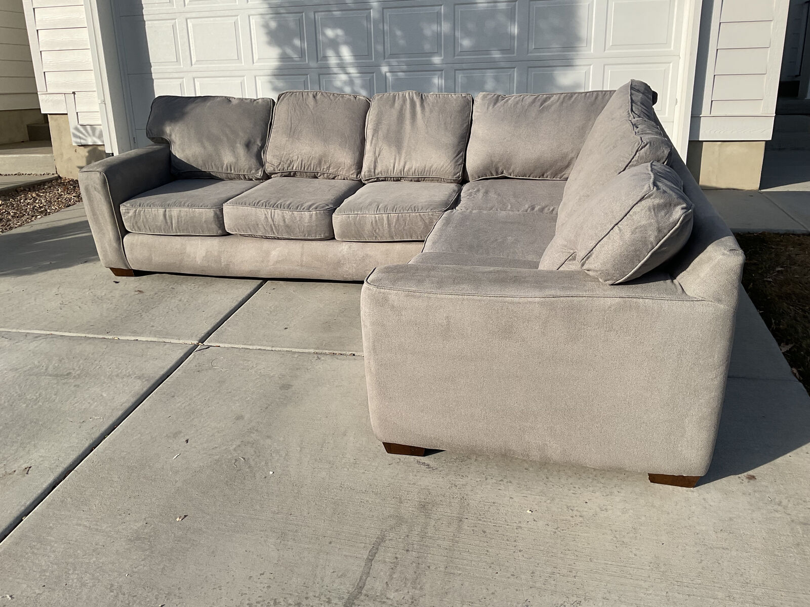 VenmoGray sectional for sale. Comfortable and clean. Very sturdy with no structural damages or rips or stains. Comes from a smoke free home with a dog. Great couch for a basement or kids because the fabric is easy to clean. I cleaned the entire couch with a carpet cleaner. Originally over $2100.