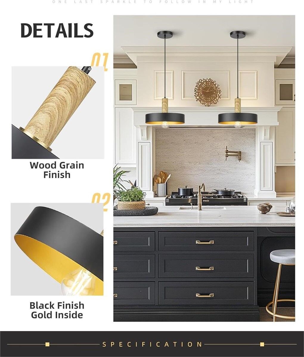 Industrial Design This farmhouse black pendant light features a matte black and wooden grain premium quality metal finish providing a vintage look. The density of the metal material of this product is more than 3 times higher than others. Product Dimensions Lampshade: 11.6" x 7.9" (Dia x H). Ceiling plate: 4.7" x 1" (Dia x H) Adjustable wire cord: 55". Max length of the pendant lighting is 64". Min is 8.9". This antique kitchen pendant lighting over island can be used on a flat, sloped or vaulted ceiling. Bulb Requirement Hard-wired. Requires 1 x E26 base max 60W light bulb. Suggest using an G45/A19/A60 bulb for the great proportion and gorgeous lighting effect. It can be dimmable with an additional dimmable switch. (Bulb and switch NOT included). Instruction manual inside, all mounting hardware for quick and easy installation. Wide Application This traditional pendant light fixtures is designed to blend into any interior space, perfect for kitchen island, dining room, hallway, bedroom, bathroom, restaurant, cafe. Satisfactory Service AUTELO foucus on customer experience. If you encounter any issues, we warmly welcome to hear your voice.