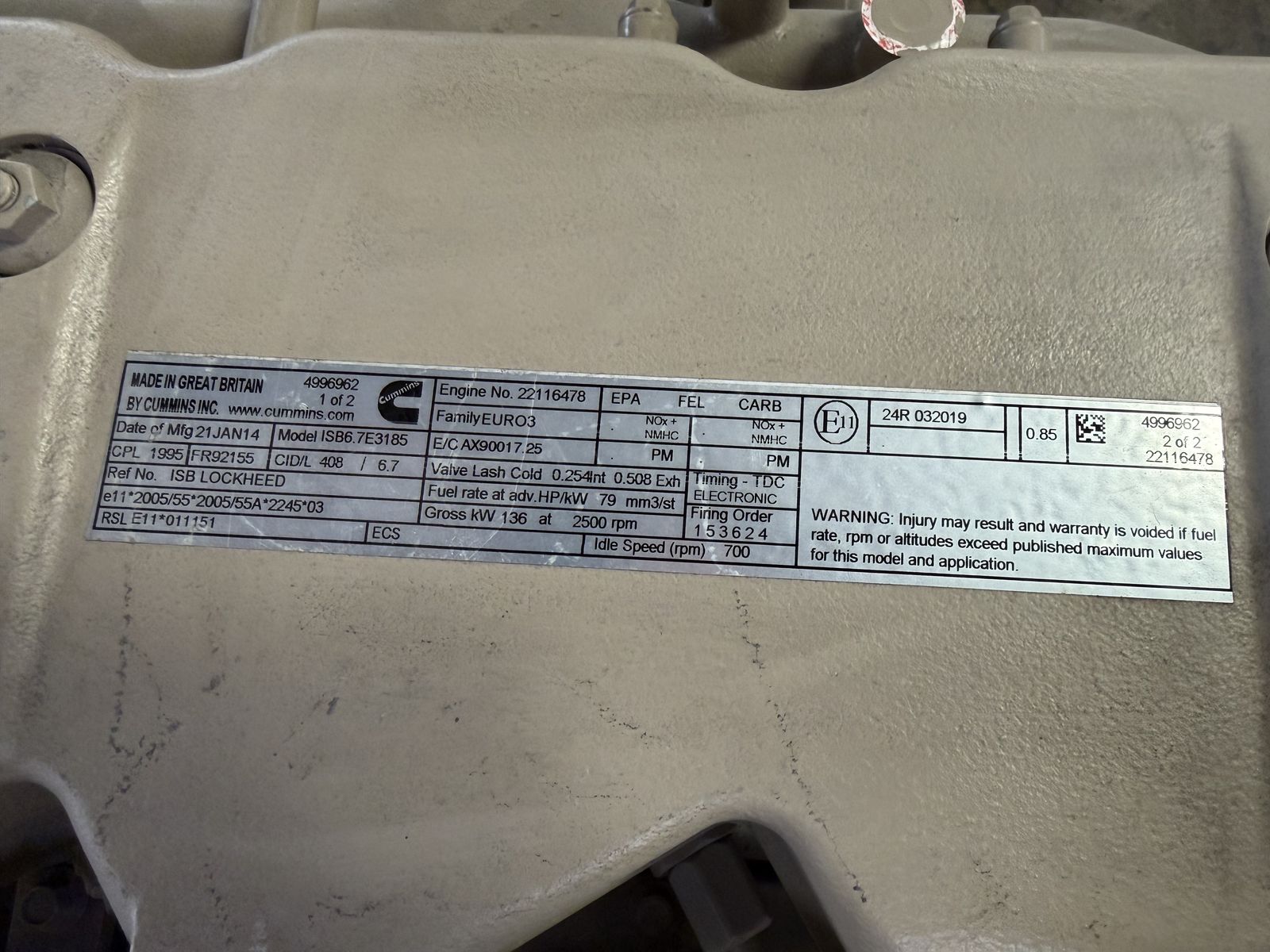Manufacturer: Cummins (Made in Great Britain)