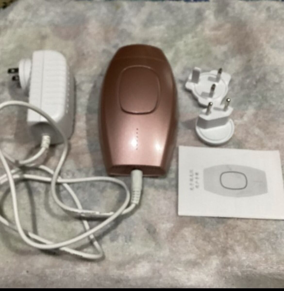 ApplePayElegant rose gold IPL hair removal device. Comes with power adapter and plug attachments. Was only used once or twice, was just sitting in the closet. Did not have the time for it. Tested and works excellent!! EUC
