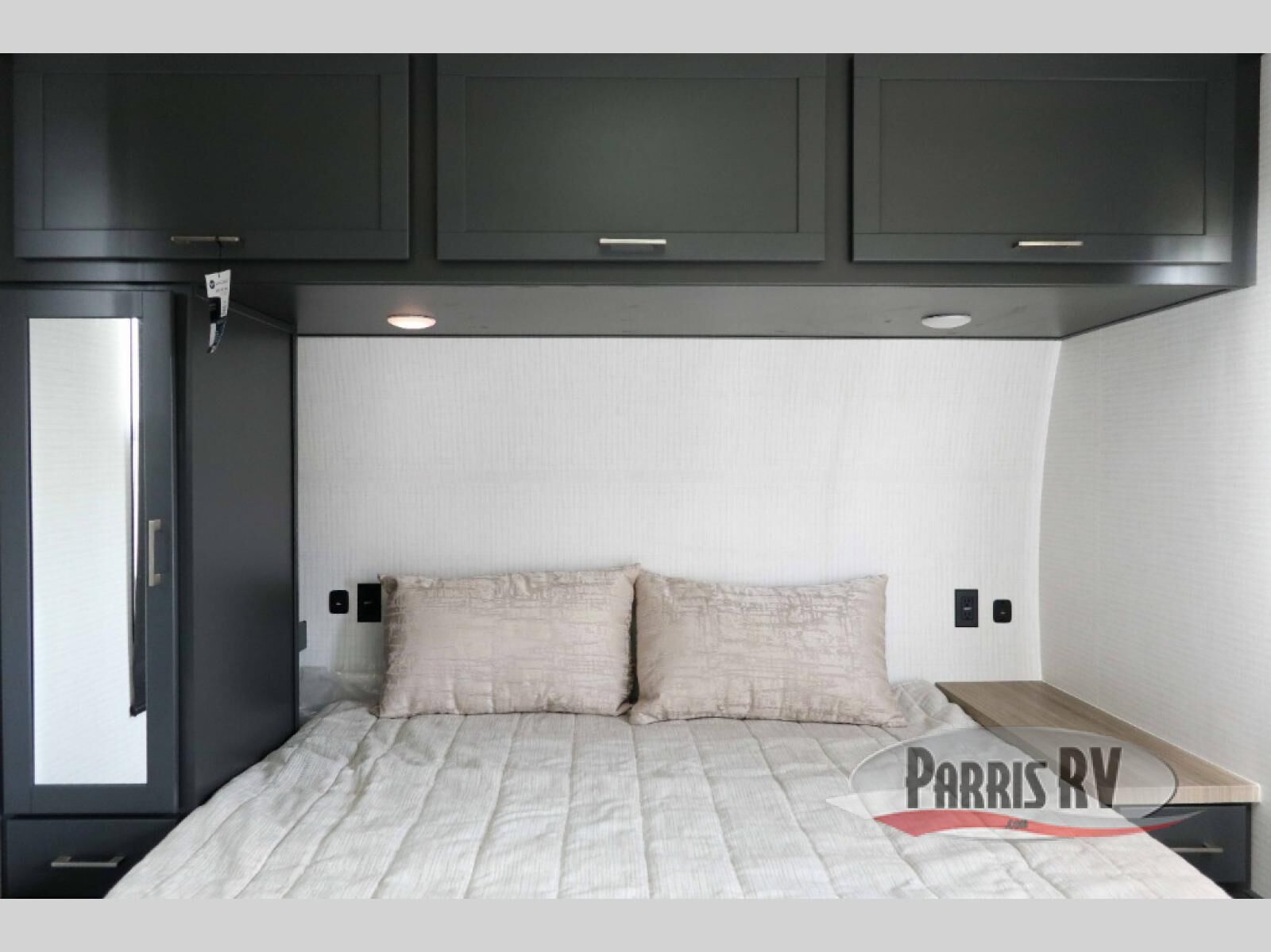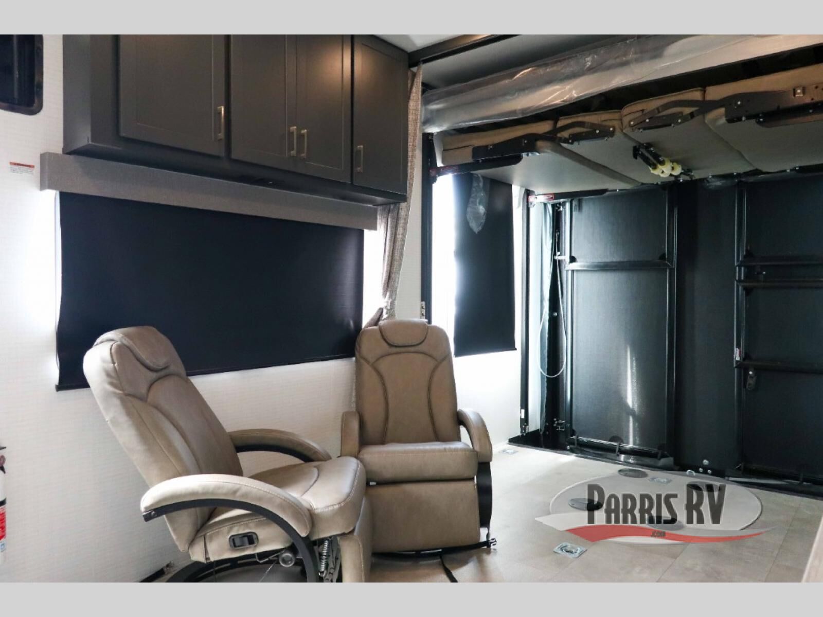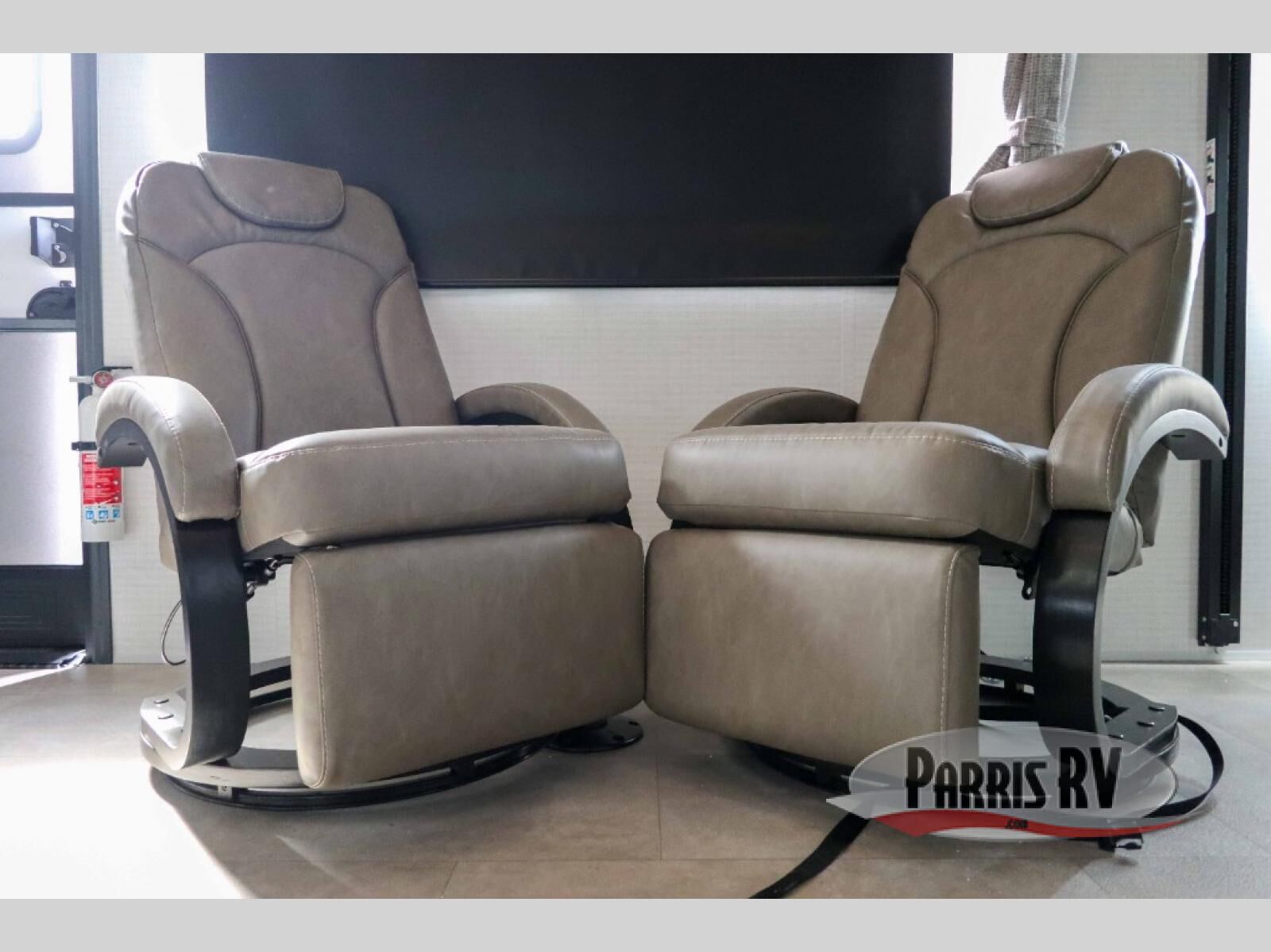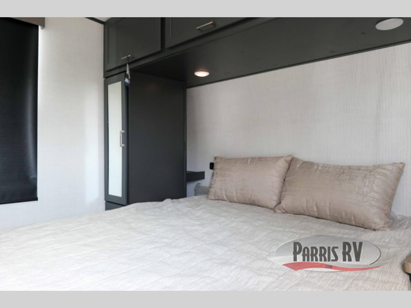 This dual entry travel trailer is sure to meet all your needs. Once you arrive at the campground, unload your toys from the 15' 7" total garage space, then grab a cold drink from the refrigerator. You can then relax on the dual lounge chairs, play a game at the electric pass-thru dinette, or let your guests rest on the electric bed. If you need a rest yourself, you'll find the king bed in the front master bedroom ultra comfortable. This model also includes an entertainment center with a fireplace and a kitchen slide out with the sink, counter space, cooktop, and pantry!