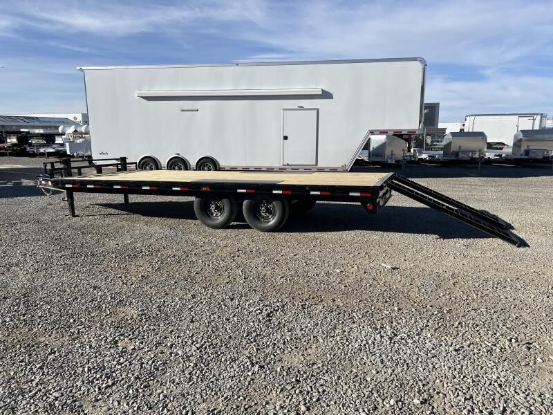 Stock Number: PJ5762 Trailer Includes Following Options: Straight Deck w/ 6'6" Slide Out Ramps Dual Front 2 Speed Jacks Locking Lid Over Tongue Standard Features: 14,000 lbs. GVWR 7,000 lb. x (2) G.A.W.R. 5/16" Grade 70 Safety Chain w/Clevis hook (2 each) Spring Loaded Drop Leg Jack (10,000 lb.) 2 - 7,000# (Dexter) Electric Axle 6-Leaf Slipper Spring Suspension 16" Black Spoke Wheels ST235/80R16 Radial Tires (3,520 lbs.) 3-5/8" x 1-1/2" (ID) Stake Pockets Diamond Plate Low-Pro Fenders 8" I-beam Tongue 3" Channel Crossmembers on 16" Centers 2" Treated Pine Lumber Deck 102" Wide Deck DOT Approved Flushmount Lifetime LED Lights All-Weather Wiring Harness (7-way RV) Powdercoat 5 year Dexter Axle Warranty WASATCH TRAILER SALES - LARGEST TRAILER SELECTION IN UTAH Springville: (801) 528-1581 | 1180 S 2000 W, Springville UT, 84663