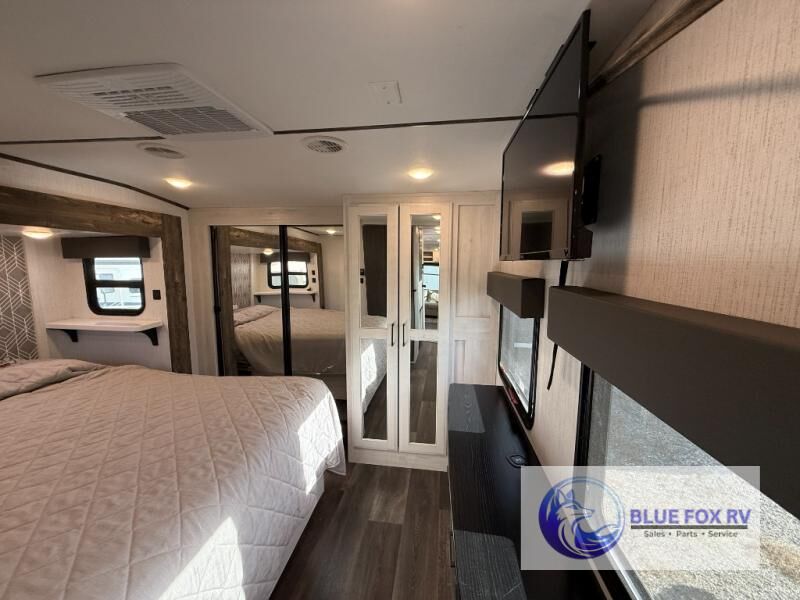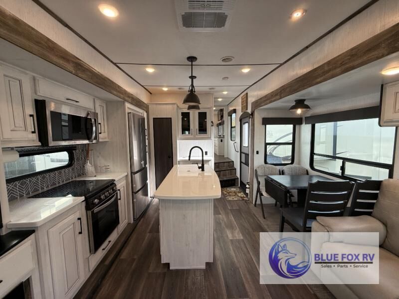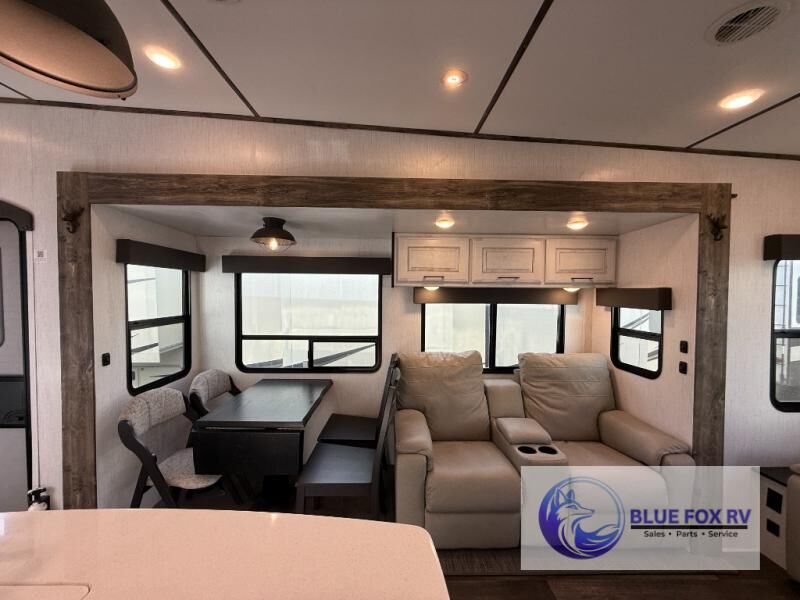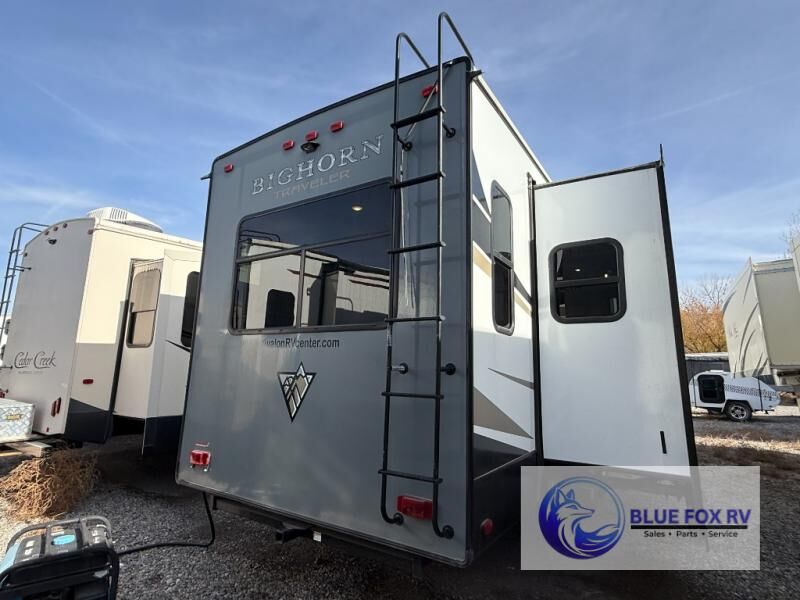 With any Heartland Bighorn Traveler fifth wheel, the construction includes a double-welded aircraft-quality aluminum superstructure, Azdel laminated sidewalls with a laminate slide out and rear end walls, and a heated and enclosed underbelly and gate valves for year-long traveling. Some of the top features include Aqua-shed 3/4"-thick slam-latch baggage doors with interior latches, cushioned woven flooring on slide out floors which are both anti-microbial and soft on the feet, and "Coastal" whitewashed cabinetry with barn beam-style fascia and accent panels giving you the style you desire. Choose your favorite ultimate road fifth wheel today!