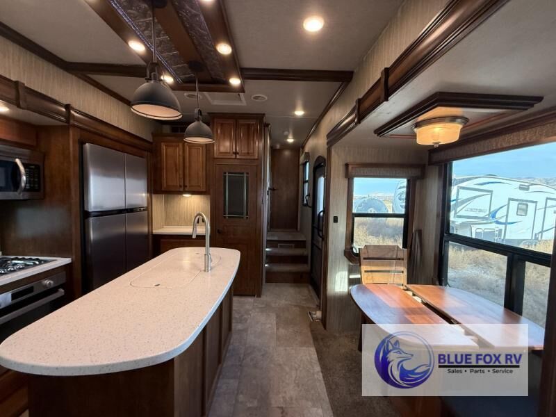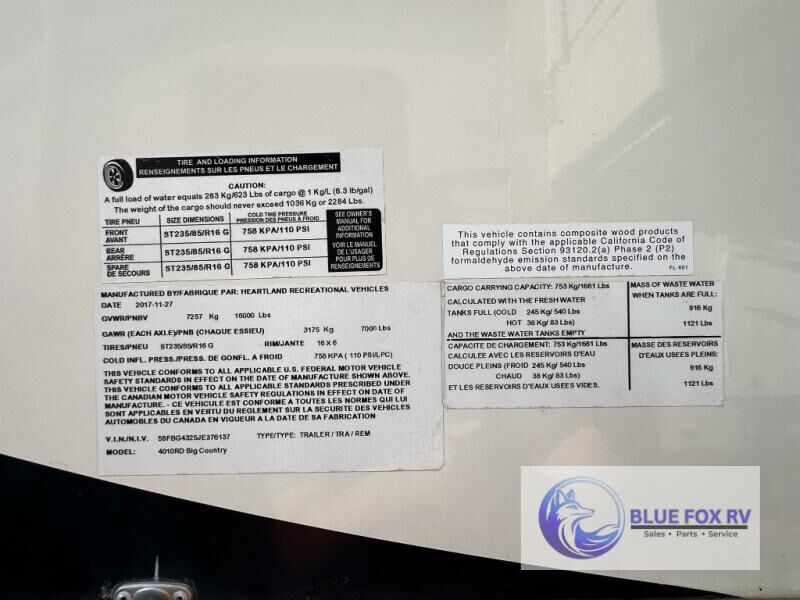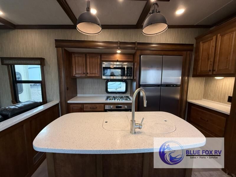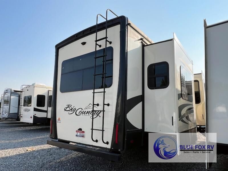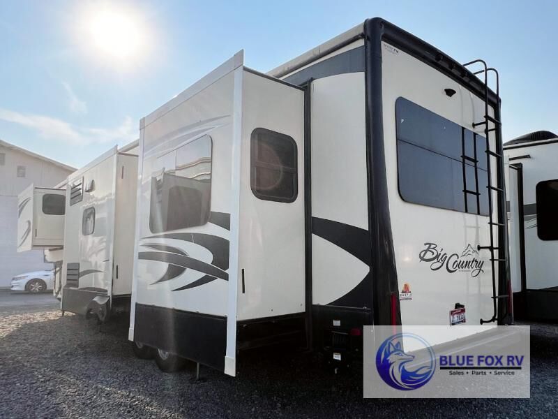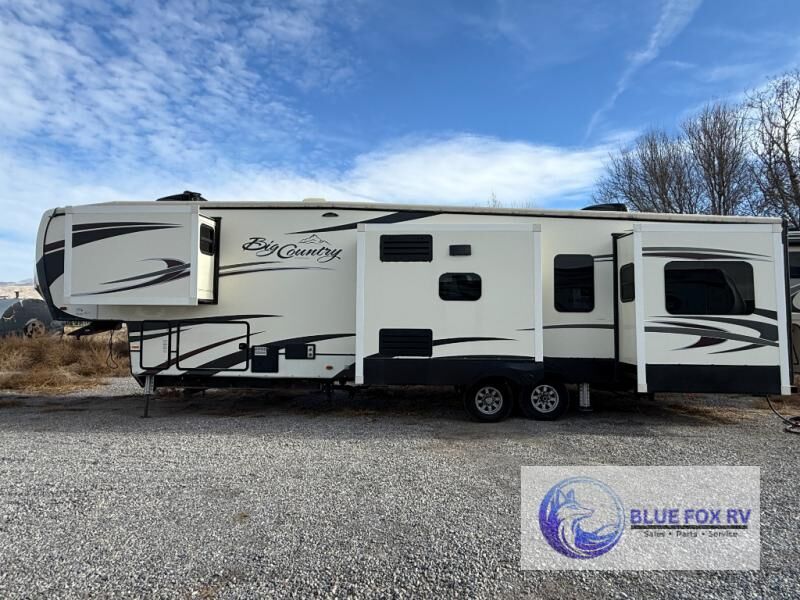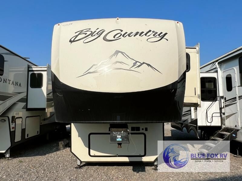 Get ready to enjoy the country with a Big Country fifth wheel by Heartland. These models have a heated and enclosed underbelly which allows you to camp in all types of weather. Also along the exterior you will find large storage areas, exterior speakers, a light at the entry step, plus a six-point hydraulic level-up auto leveling system. Inside there are stained hardwood cabinets plus a deep stainless steel kitchen sink. The living room features night shades throughout to provide you the most privacy plus there is a high-output entertainment system with DVD/Bluetooth and HDMI.