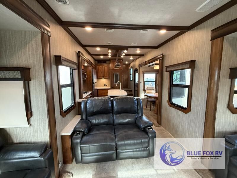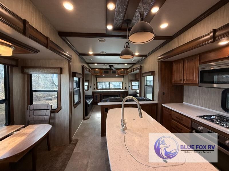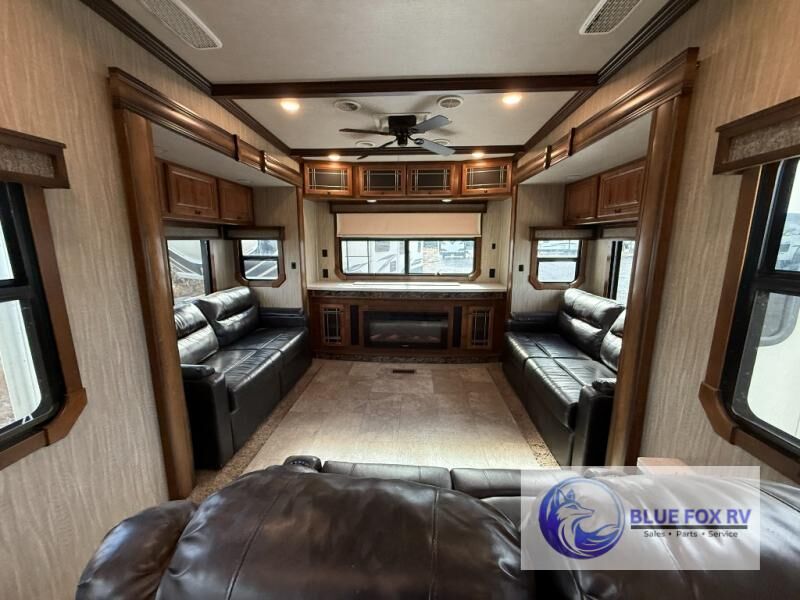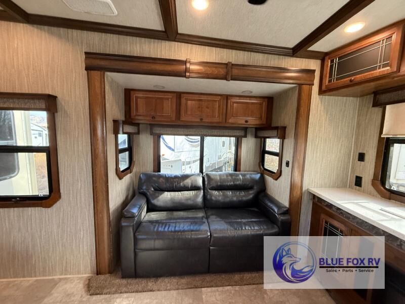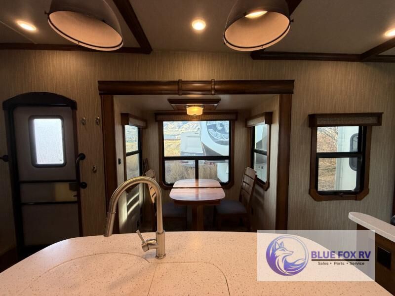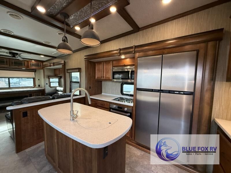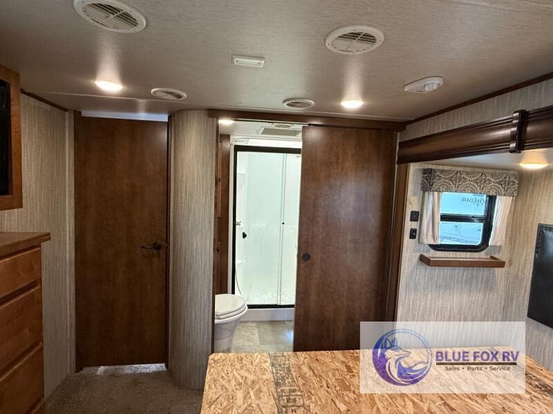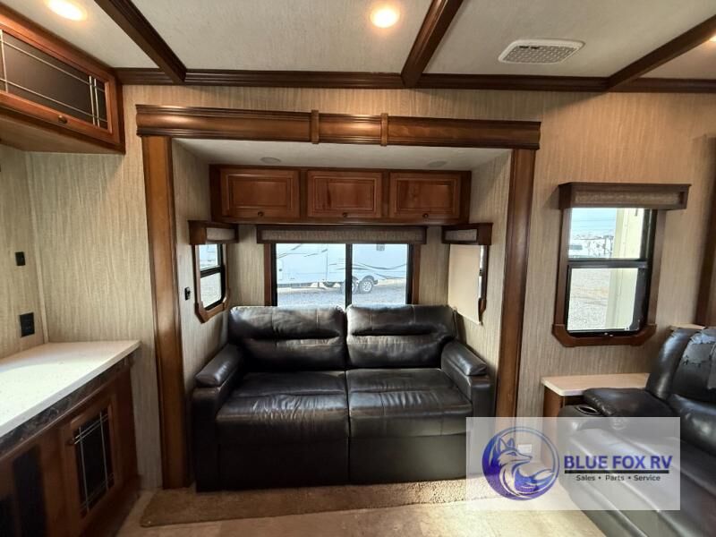 Get ready to enjoy the country with a Big Country fifth wheel by Heartland. These models have a heated and enclosed underbelly which allows you to camp in all types of weather. Also along the exterior you will find large storage areas, exterior speakers, a light at the entry step, plus a six-point hydraulic level-up auto leveling system. Inside there are stained hardwood cabinets plus a deep stainless steel kitchen sink. The living room features night shades throughout to provide you the most privacy plus there is a high-output entertainment system with DVD/Bluetooth and HDMI.