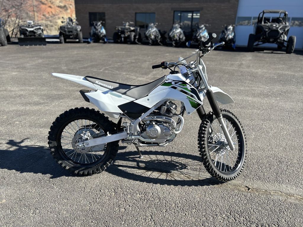 Featuring confident handling, KLX®140R motorcycles are the ideal entry into off-road riding. The easy-to-ride KLX140R lineup offers a 144cc engine, plush suspension, and push button electric start, making for great trailblazers.