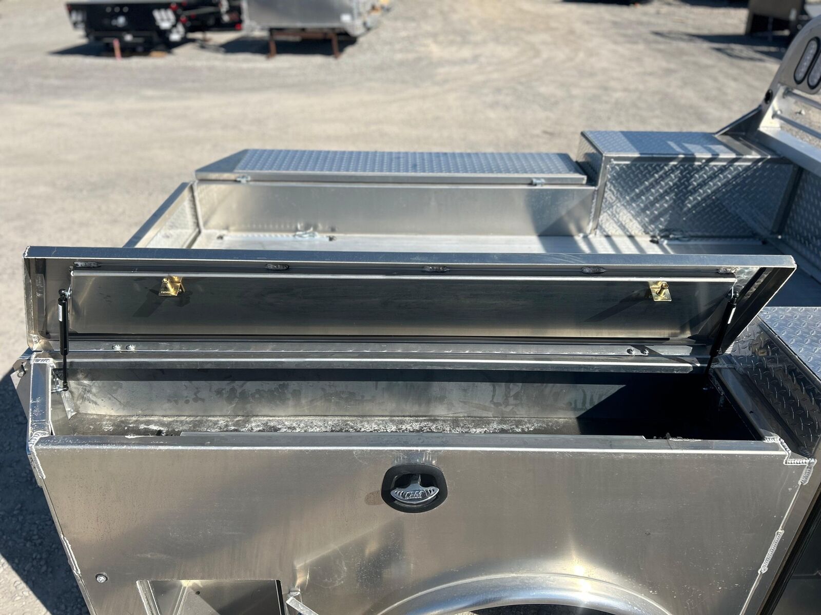 TOOLBOX Utility Box in Front, Top-Open 3/4 Length Shovel Box; Low-Profile Chain Box in Rear