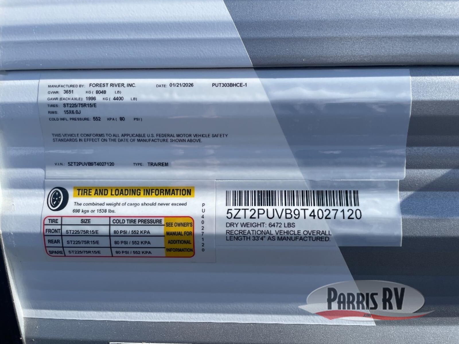 Forest River Puma Camping Edition travel trailer 303BHCE highlights:
