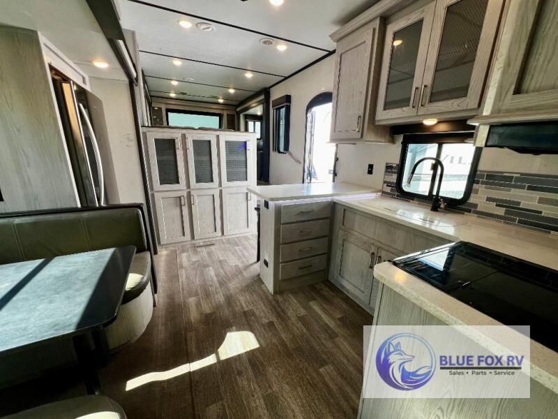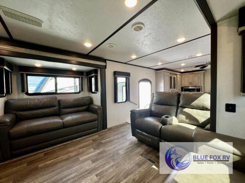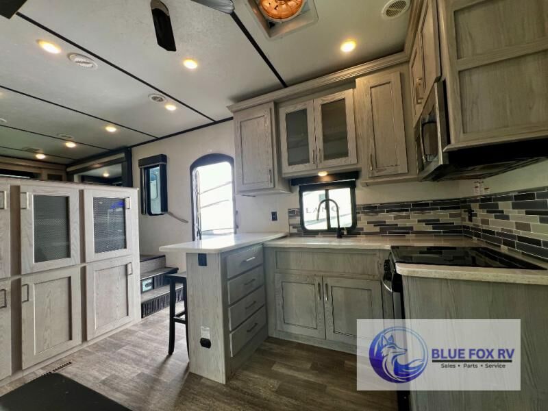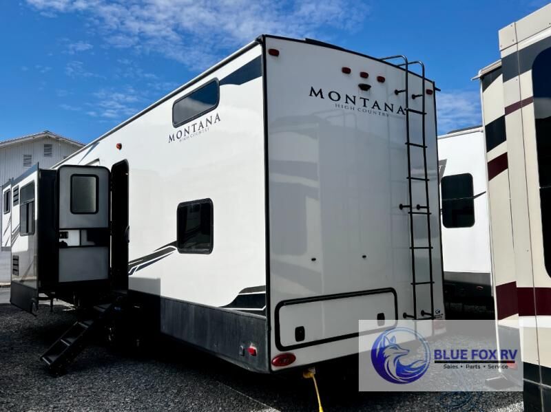 With each Montana High Country fifth wheel by Keystone you will enjoy family-friendly features, lightweight floorplans, and drop-frame construction for maximum storage. Each model is built for four season living with the heated and enclosed underbelly and the astrofoil insulated slide floors and underbelly. The Mystic Ash cabinetry, hardwood decorative slideout fascia, and accent crown molding create a luxurious fifth wheel everyone can get used to. These models include a Whisper Quiet A/C system to cool your space quietly and evenly, plus there is a 35,000 BTU furnace that will allow you to extend your camping season. The Montana High Country fifth wheels are equipped with a Road armor shock absorbing hitch pin for easy towing, and set-up will be a breeze with the Hitch Vision with LED lighting. There are many more features to love about these fifth wheels, like the MaxTurn front cap, the Solera series power awning(s), the residential appliances, and the list goes on!