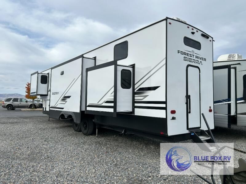 Each one of these Forest River Sierra fifth wheels are equipped with everything you need to make the most of each adventure! The underbelly armor will protect your unit's vitals from road debris and the painted two tone aerodynamic fiberglass front cap has an improved turning radius to make them easier to navigate. With an electric leveling system, you can set your unit up quick and easy then get to having fun faster than ever. The cambered powder coated frame with rust prohibitor construction allows for more duration of the fifth wheel. Each model also comes with a TV antenna with booster, 60,000BTU on demand tankless water heater, Goodyear Radial tires with 7,000 lb. axles, and the list goes on. The interior is just as impressive with Beachside Sundance Congoleum linoleum, recessed residential lighting, a memory foam mattress, and hidden hinged, soft close drawers and cabinets!
