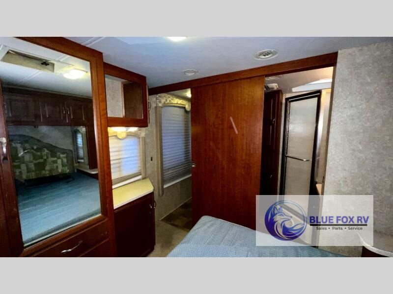 Double Slide, Rear Queen Bed Slide w/Nightstands, Wardrobe, Vanity w/TV, Side Isle Bath w/Angle Shower, Double Entry into Bath, Linen Closet, Pantry, 3 Burner Range, Microwave, Double Kitchen Sink, Refrigerator, Booth Dinette, Sofa, TV, Overhead Cabinets, Bunk Over Cab Area and More. Under 57,000 miles