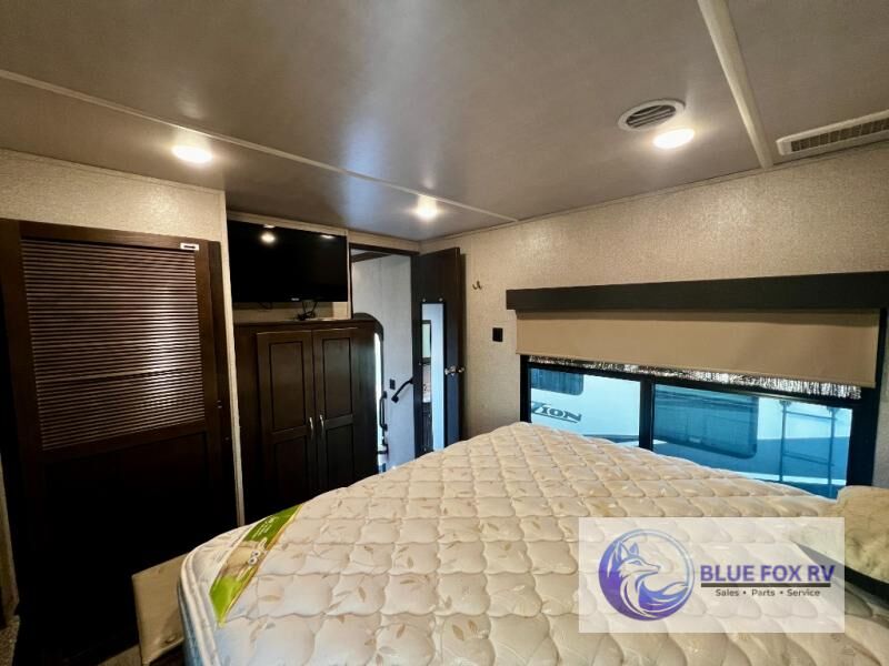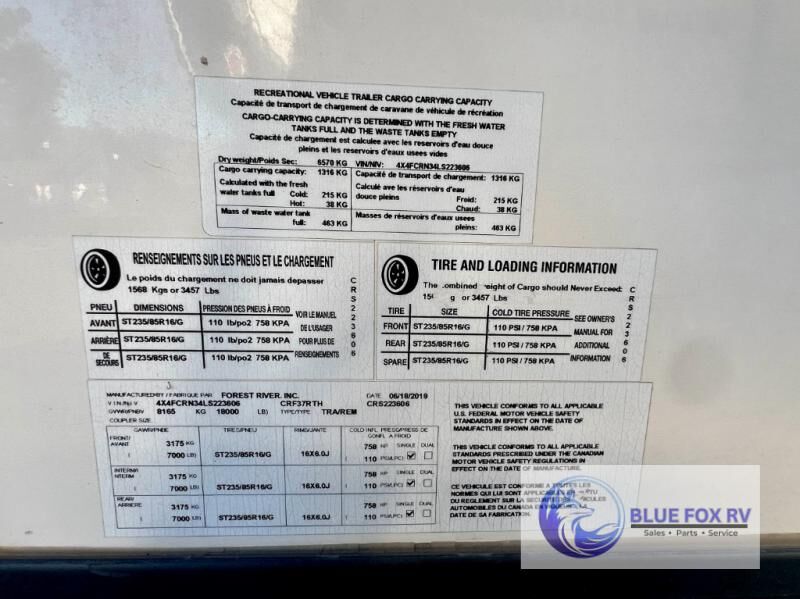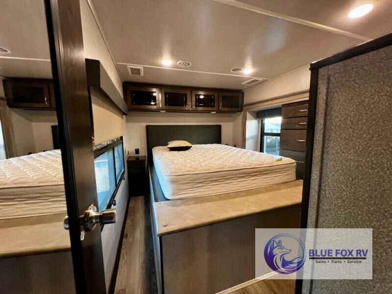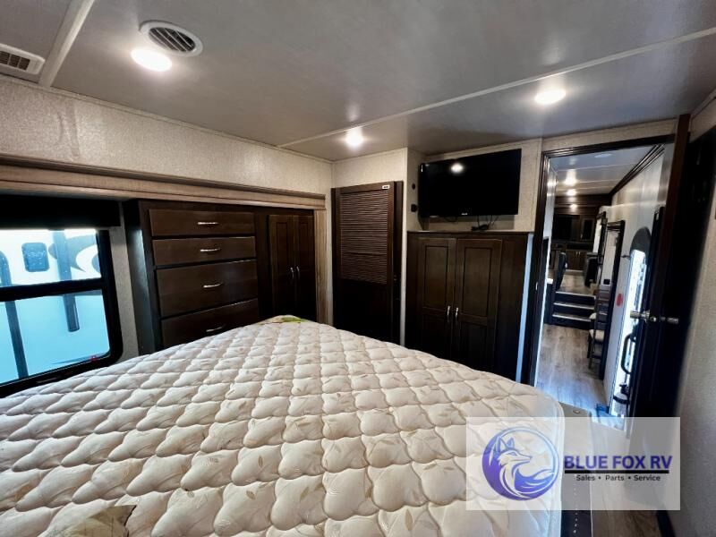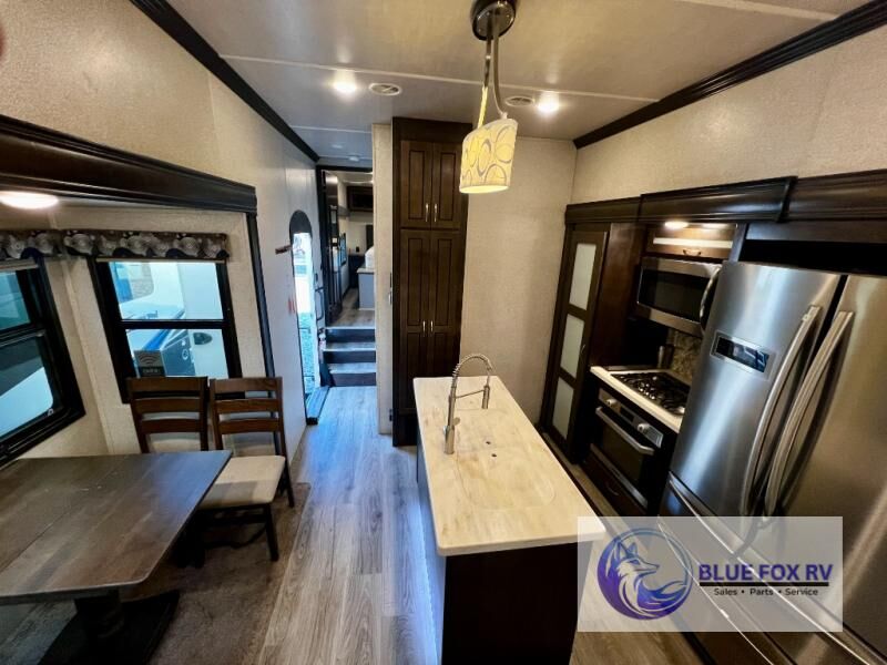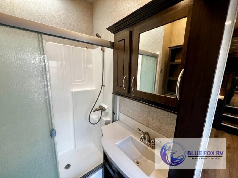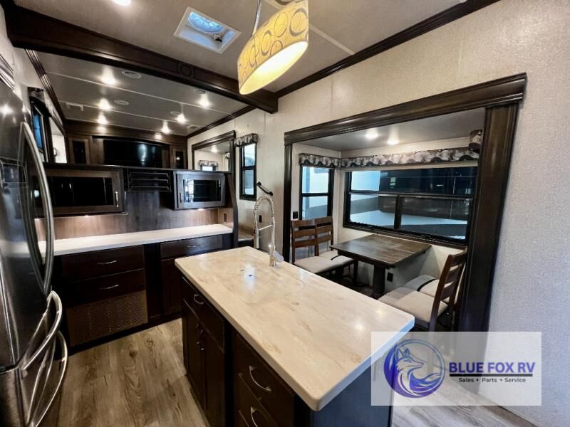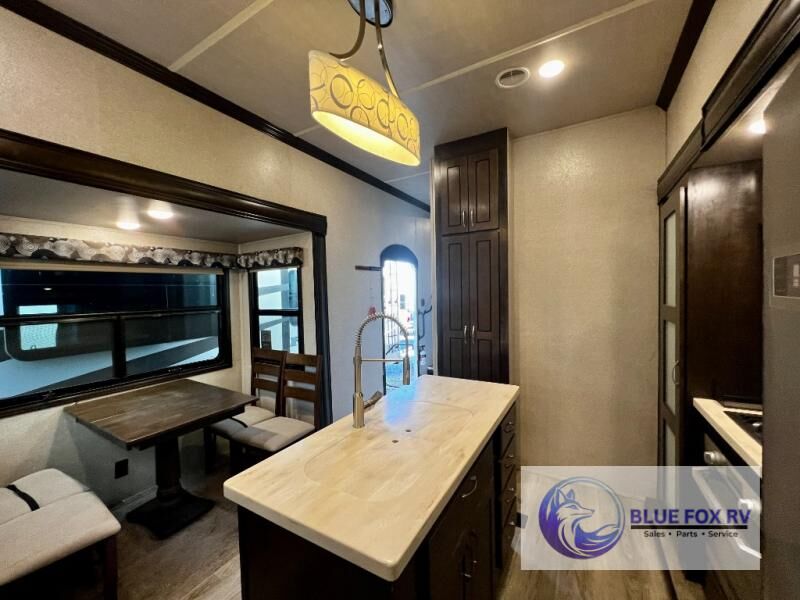With any Forest River Cedar Creek Silverback Edition fifth wheel you will find Congoleum carefree flooring throughout and in the dining slide there is Shaw carpeting. The kitchen has everything that you would expect to find at home and more from the Furrion chef's kitchen with a gas cooktop, to the full panel backsplash, you won’t be disappointed! The 36" electric fireplace, the Jensen 12 volt CD/DVD/AM/FM/MP3/USB stereo system with a smart control app and Bluetooth, and the 50" LED TV with a swing arm in the living room are sure to be crowd pleasers! Each fifth wheel is constructed with Cedar Creek's famous all aluminum super-structure with a radius wrap metal skirt, and a Z-frame. Plus each comes with a Dexter safety and performance package which includes Dexter axles/brakes/suspension, and a Dexter E-Z flex rubber equalization system with bronze bushings and six greased zerks per side. You are sure to love camping in any one of these Forest River Cedar Creek Silverback fifth wheels so come choose your favorite one today!