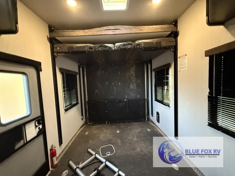 Hit the off-road trails of your dreams after unloading your ATV down the rear ramp door and out of the 13' garage. This area converts to an extra living and sleeping space for the kids, your buddies or extra family members. The main living and kitchen are quiet spacious with the slide out sofa allowing you more floor space to make meals in the kitchen area. You can get then get cleaned up in the double entry bathroom to retire to your own master bedroom with the second slide out offering more storage, a queen size mattress that could accommodate an Olympic Queen mattress. Plus, the double entry doors makes for a smooth flow of traffic in and out of this unit!