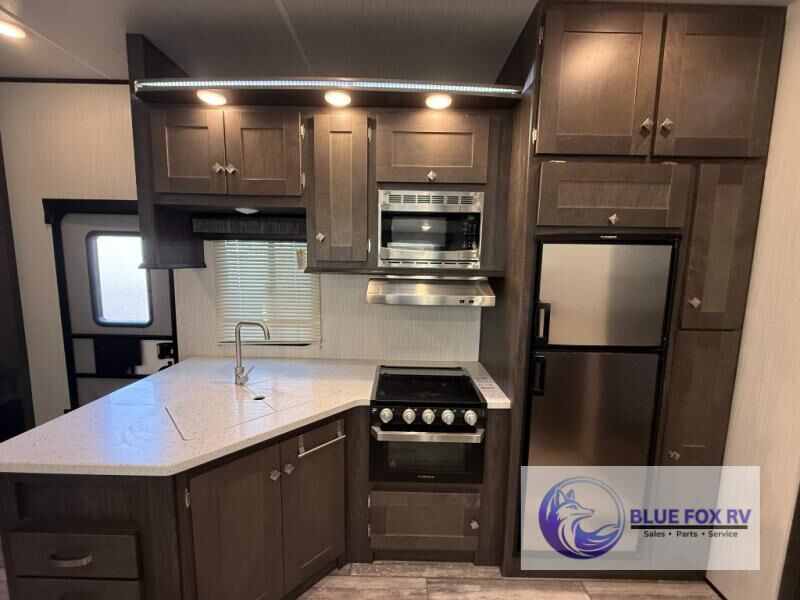 You will find indoor luxuries with an outdoor lifestyle in any one of these Heartland Gravity toy haulers! The 30 gallon lockable fueling station makes it easy to fuel up your favorite off-road toys and you can even unlock it with your units keys. The ramp door patio kit will create the perfect outdoor hangout spot, and the MORryde solid step helps you to safely enter and exit. You can go off grid thanks to the 20 watt solar panel with inverter prep and know that your toys will arrive in the same spot you left them with the integrated frame welded tie downs. The Dexter axles with G range tires ensures you will have a safe trip too. You can even keep your electronics fully charged with the wireless charging ports and keep yourself fully charged sleeping on the Queen bed!