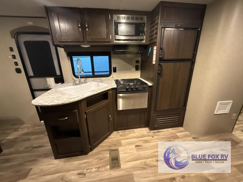 This Springdale SS bunkhouse travel trailer model 3030BH features double slide outs, a bunkhouse that your kids will certainly enjoy, and dual entry doors for added convenience. The bath features a private entry door which is easily accessible when you are enjoying the outdoors. In the bunkhouse, you will find a slide out with a J-Cube sofa and a bunk above. Across the room, there is a top bunk with storage beneath that your kids are going to love. You will also enjoy the front pass-through compartment for all of your outdoor camping gear. Store drinks or snacks in the outdoor refrigerator so you don't have to go back inside.