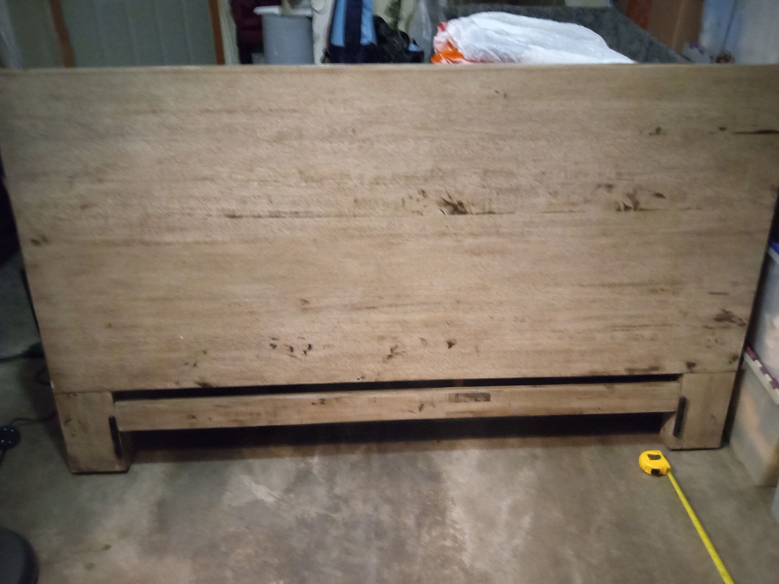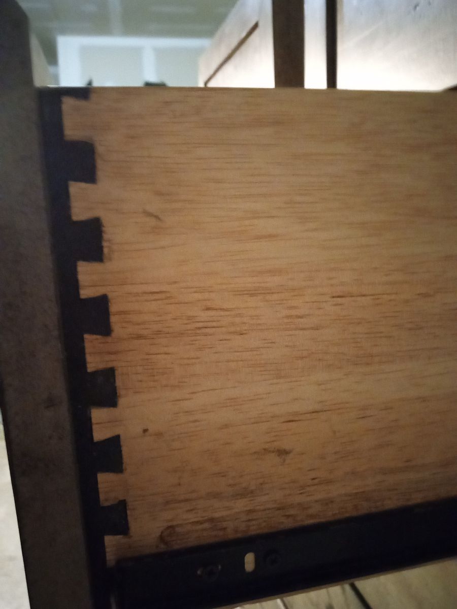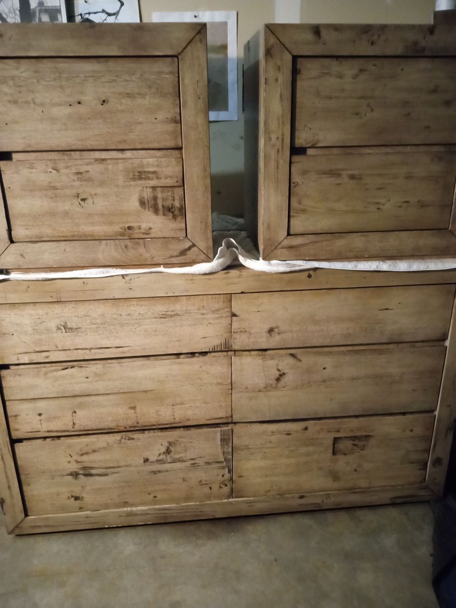 The first photo is from website as I just moved this set to garage I do not have the highboy dresser or mirror all are same color no brown solid wood foot board and side rails