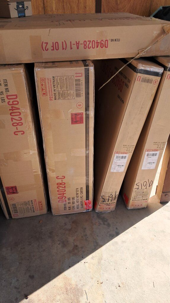 This is an awesome wide-wail courderoy sectional. It has four pieces, which can be configured as a long, straight couch or in an L-shape going either direction. These four pieces are brand new, in boxes. I do have some set up, if you'd like to see/sit on it.