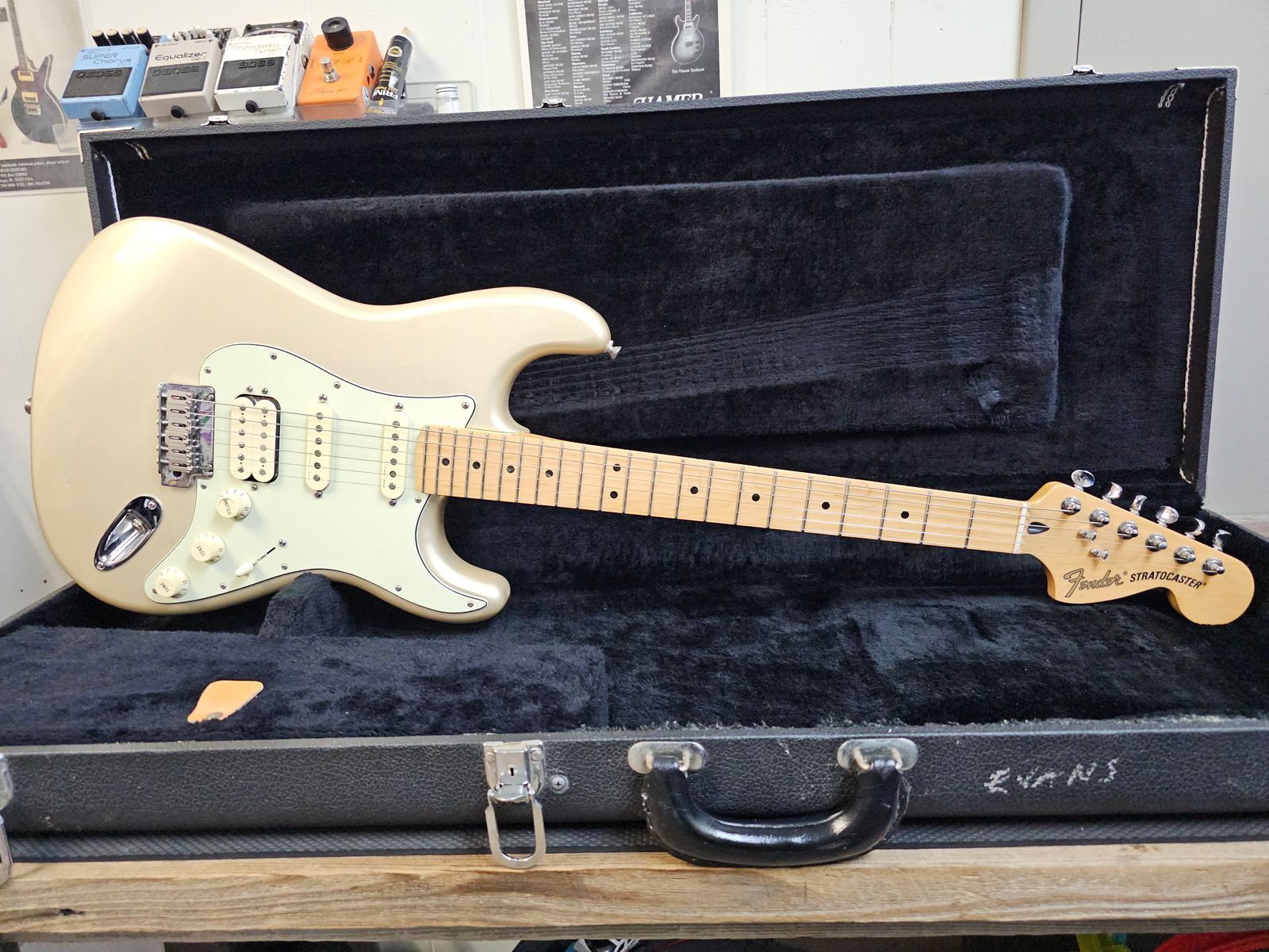VenmoThe Fender Deluxe Stratocaster HSS combines a pair of Vintage Noiseless single-coil pickups for legendary Start sound with a responsive Twin Head Vintage Humbucker for a spectrum of tonal options in a classic package. Blizzard Pearl finish. Hardshell case included. Back body plate and trem arm also included.