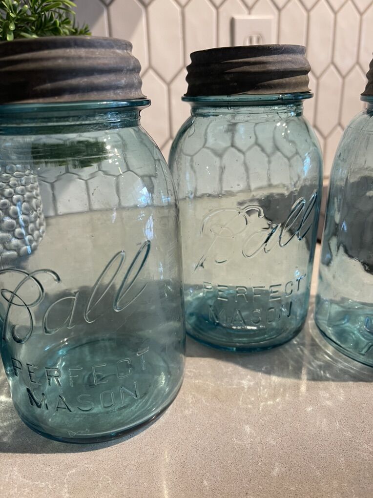 Vintage Antique Ball Mason Jar Lot – Early 1900s – Bubbles – Zinc Lids