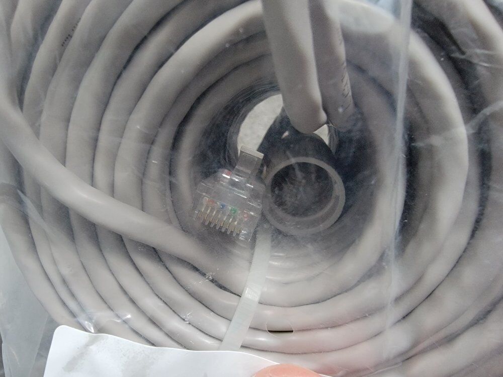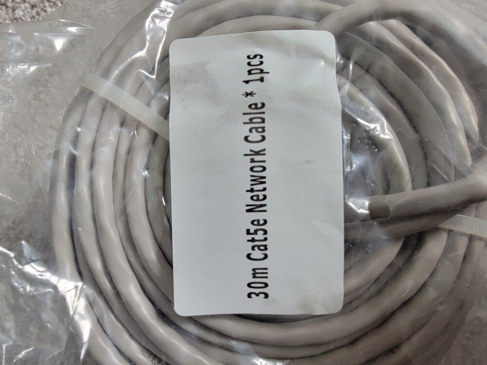 VenmoNew, rolls of 30m Cat5e network cable. Each cable still in its plastic wrap. One end has a twist lock.
