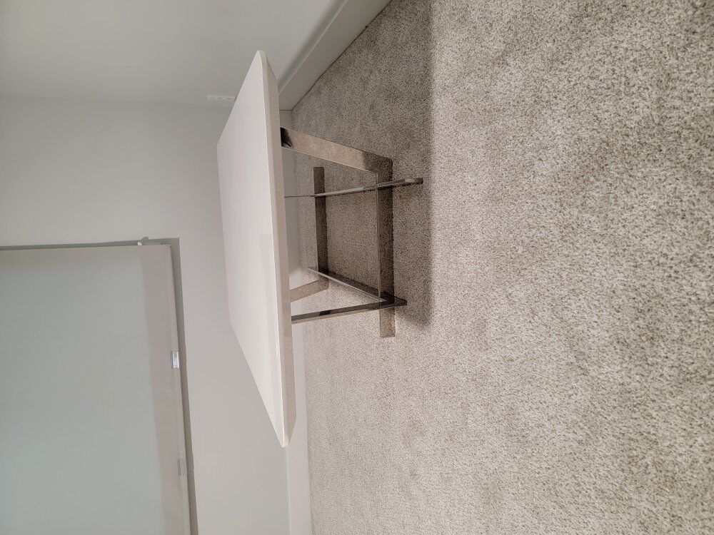 VenmoSieva White Gloss Modern Coffee Table from Scandinavian Designs in great shape. MDF coated top with stainless steel base. Dimensions are 55.1"W x 31.5"D x 15.74"H from the manufacturer.