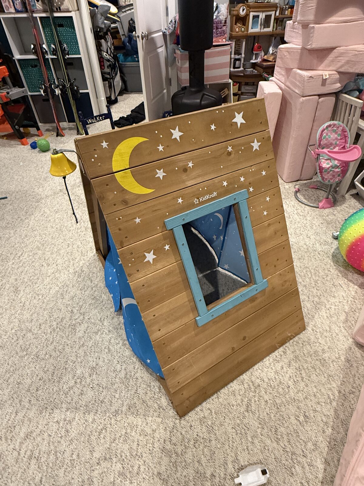 VenmoWooden play AFrame tent. Smoke free, pet freee home. Fabric and stars glows in the dark. 3ft tall, base is 42inches long. No stains or major scratches.