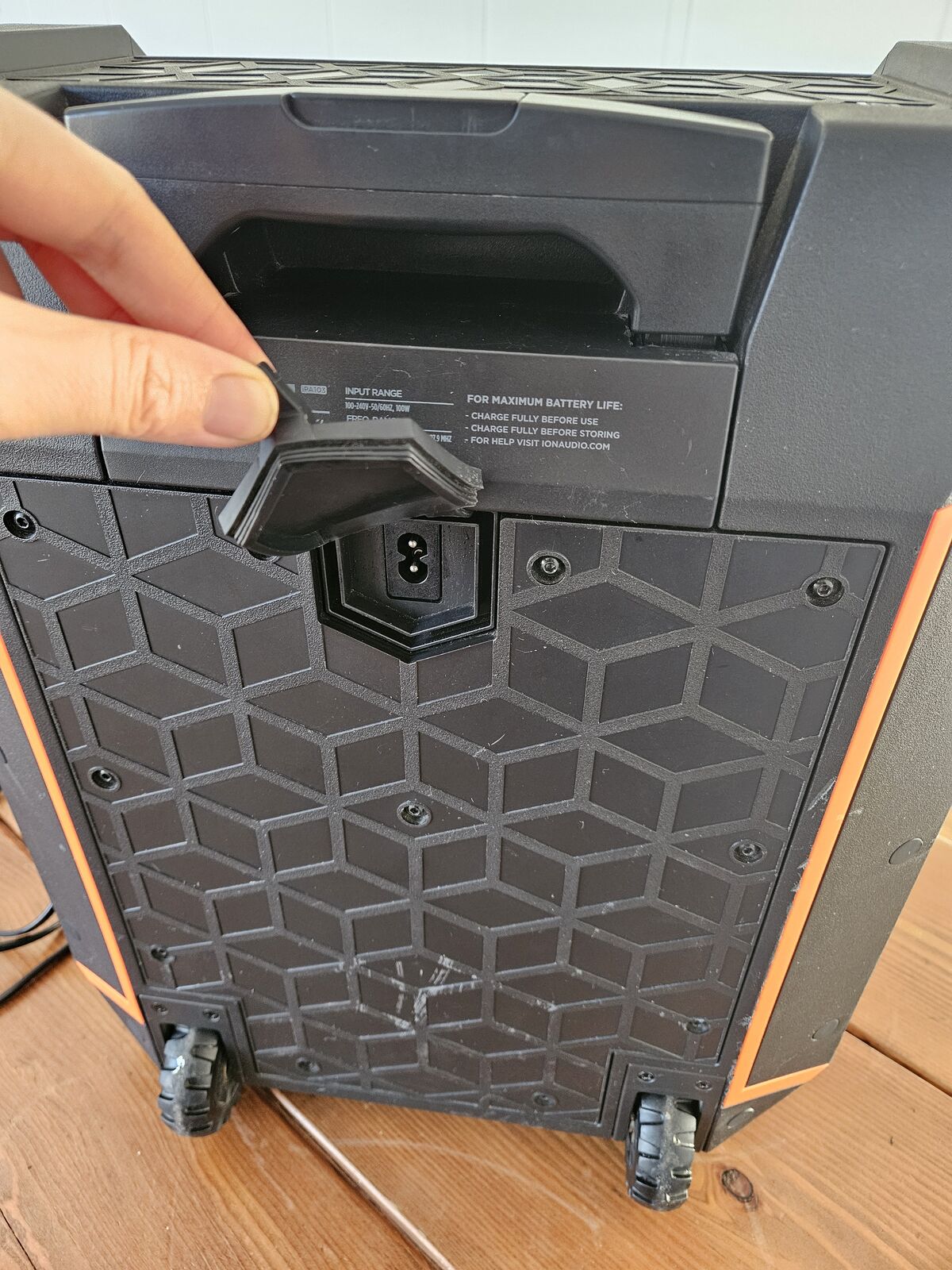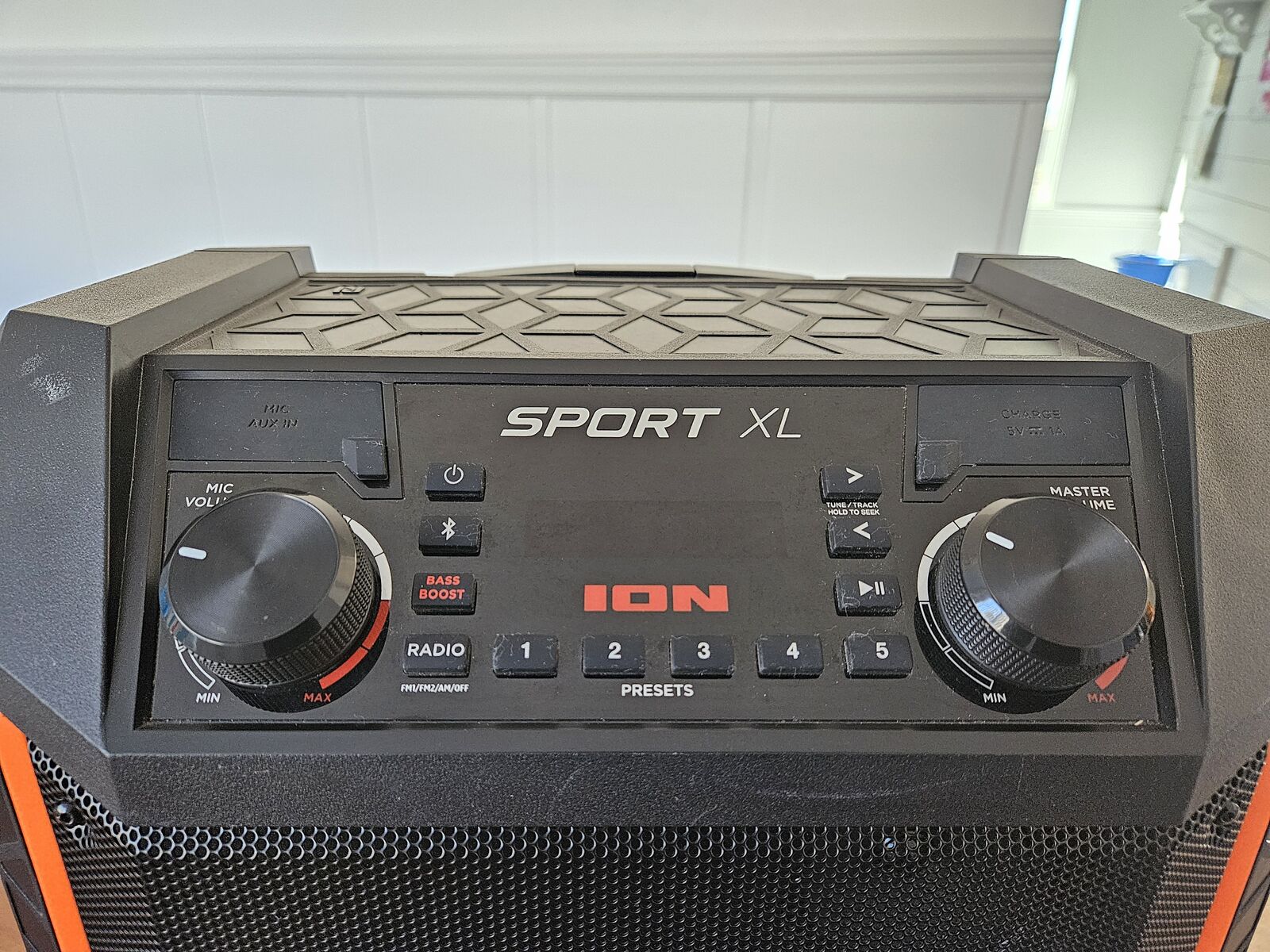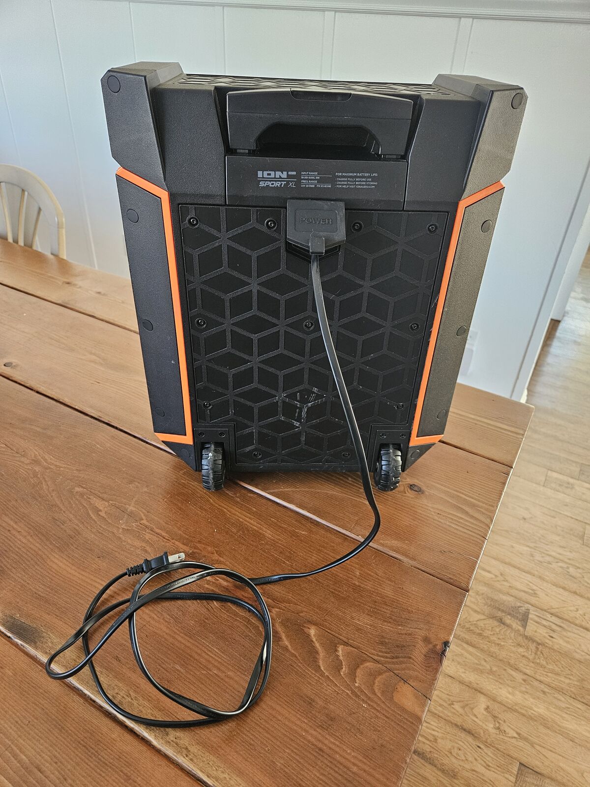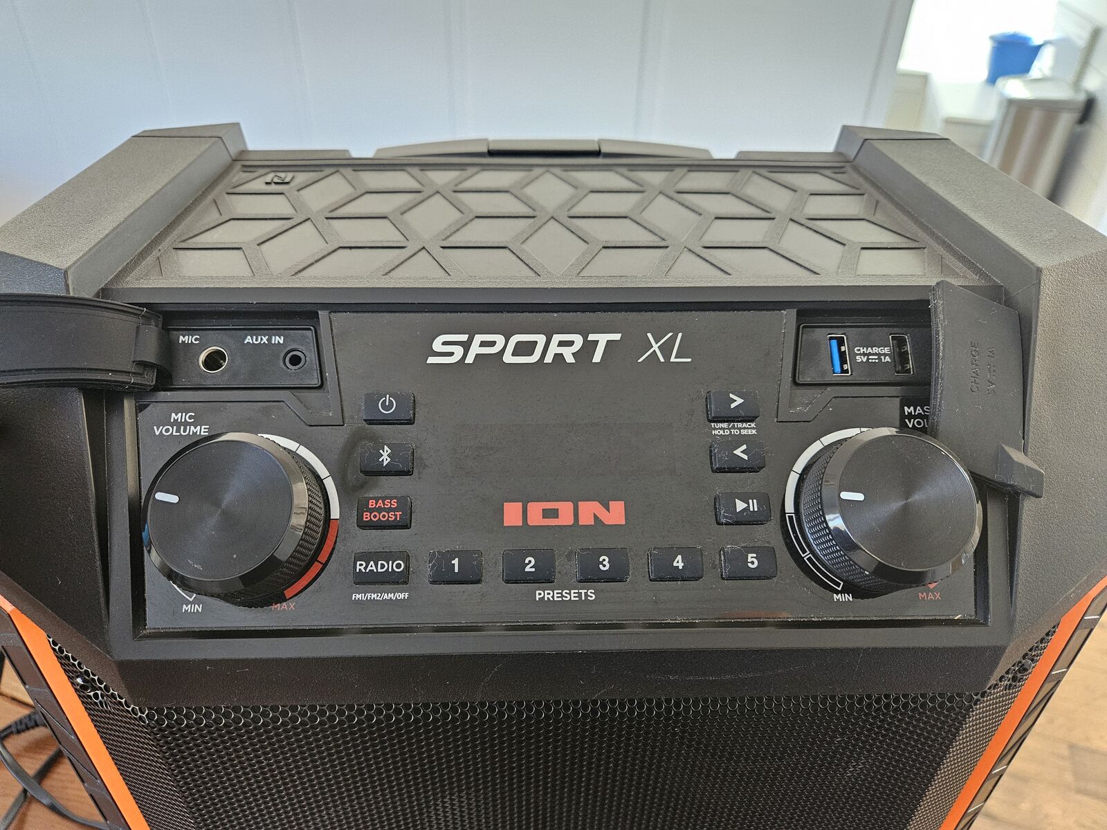 This speaker does Bluetooth, aux, plays radio, and even has a port for a microphone or guitar to plug into. It includes charger cord and it can be fully charged and run off battery, so it is a great option for portable music! Everything is working good.