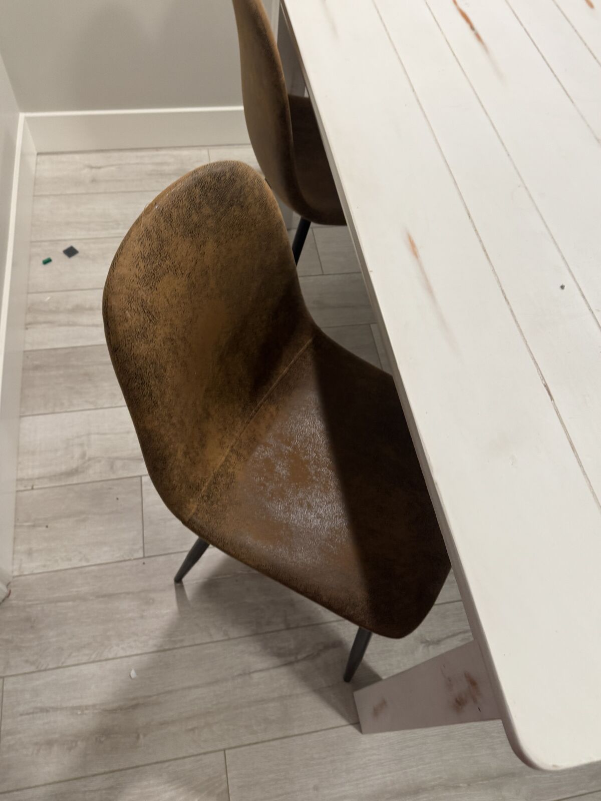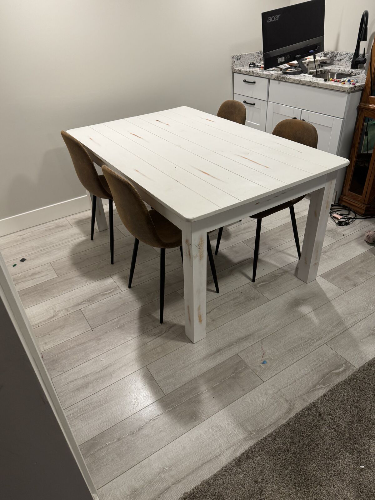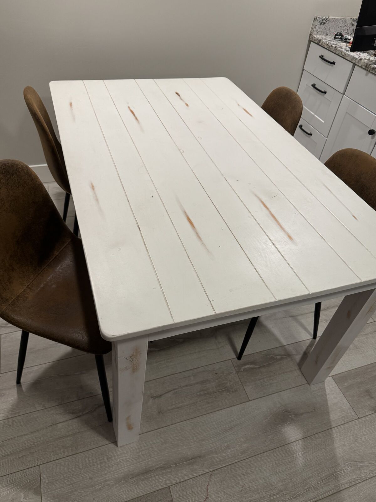 White rustic table with four chairs