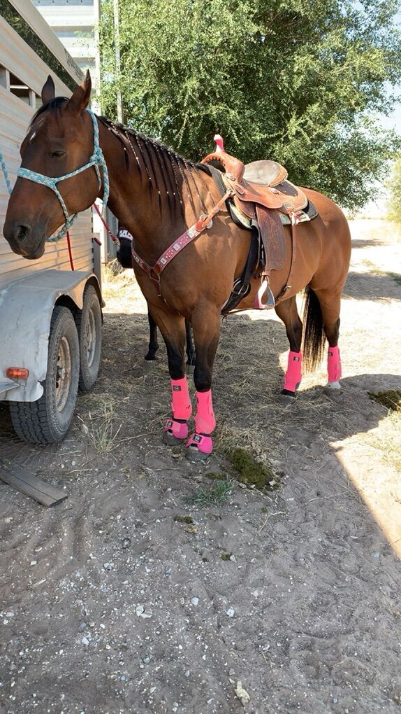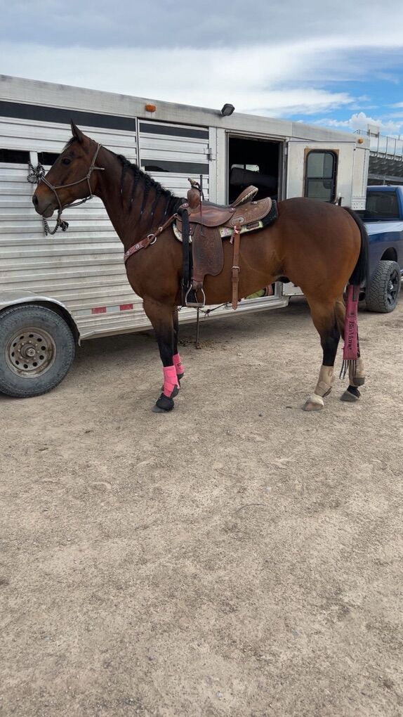 Meet hurricane!!, he is a papered bag gelding that is about 16h he’s an absolute sweet heart and loves to be rode and loved on, I trained him myself to be a barrel horse he was a previous chariot and flat track horse, so he is papered, I would say he is a 2D horse but could definitely be pushed to a 1D with the right rider, I’m kinda sad to get rid of this boy but I don’t have enough time for him where I’m not rodeoing anymore and he has so much potential he deserves to be used and go run barrels!, he also has had ropes swung on him and I do jump him sometimes and has been ridden in western and English, I would loves for him to go to someone who has the time to put into him to keep him going and chase dreams with someone!! Cash only im asking15,000
