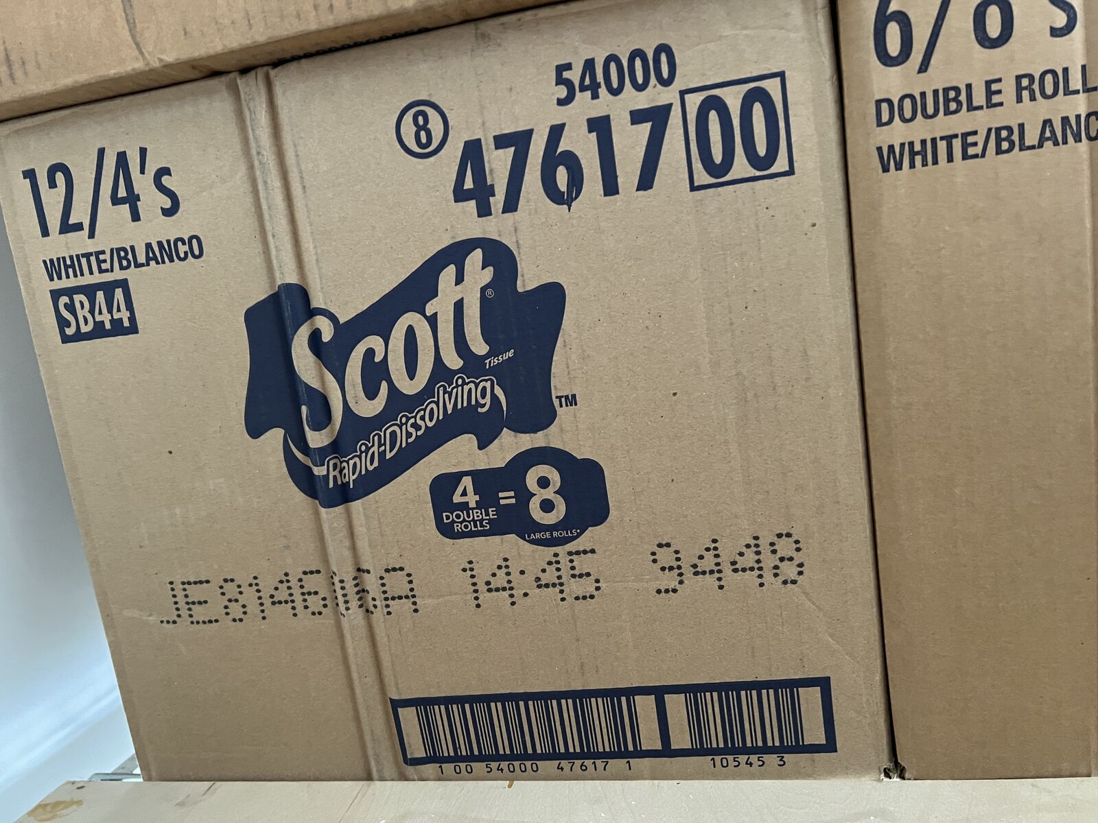 VenmoScott rapid-dissolving toilet paper for RVs. Four cases available @ $30/case; 48 rolls per case.
