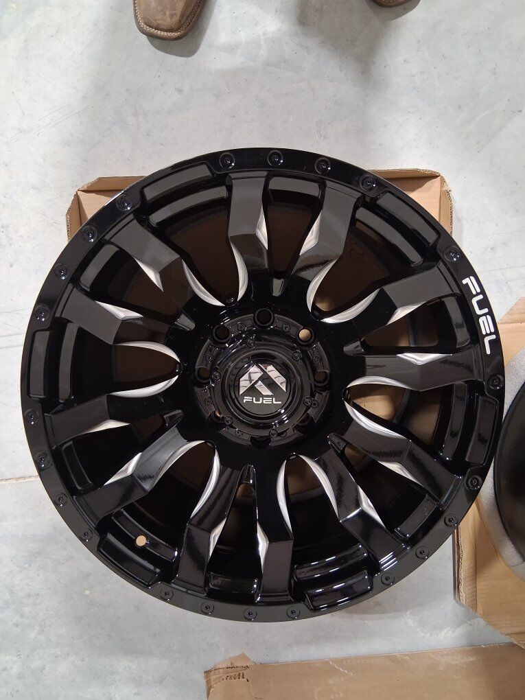 ZelleBrand new Fuel 6 wheel set. Has aggressive offset to run larger tires up to 13.5 widths with no spacers. Front rims are super single eliminating the stock spacers to give standard rim look and run a lot smoother with less vibrations. Bought for a 2012 Dodge and decided to sell the truck. 20x10 Fuel D673 Blitz Gloss Black Milled PRE-19 DODGE and pre 99 Ford 8x6.5 bolt pattern will fit a lot of old trucks too. $2000 obo