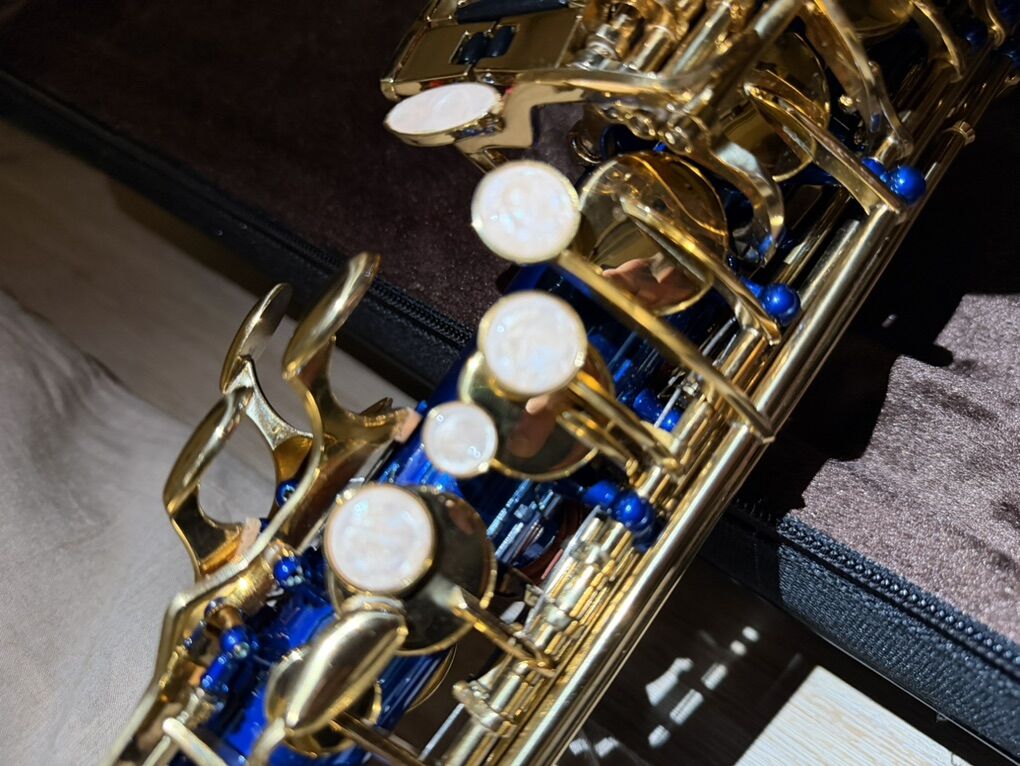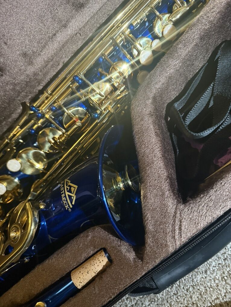ApplePayBlue and Gold EastRock Alto Saxaphone E flat LIKE NEW! Has probably been played 4x. Just for fun. Great condition. Comes with case. $300 OBO