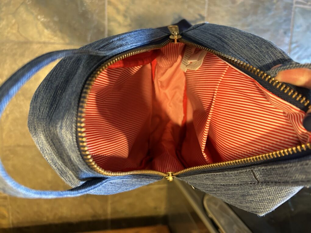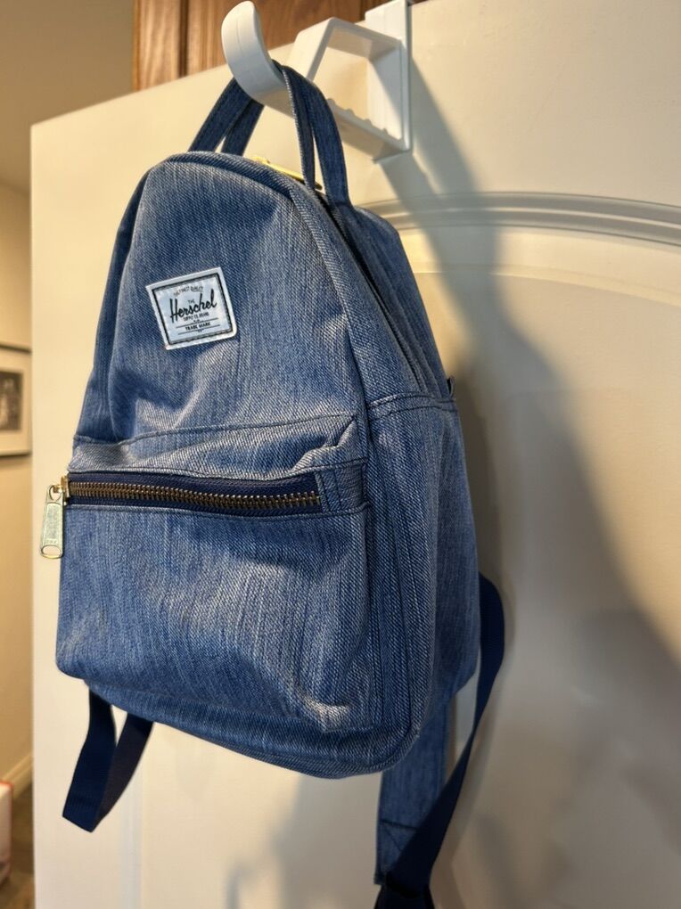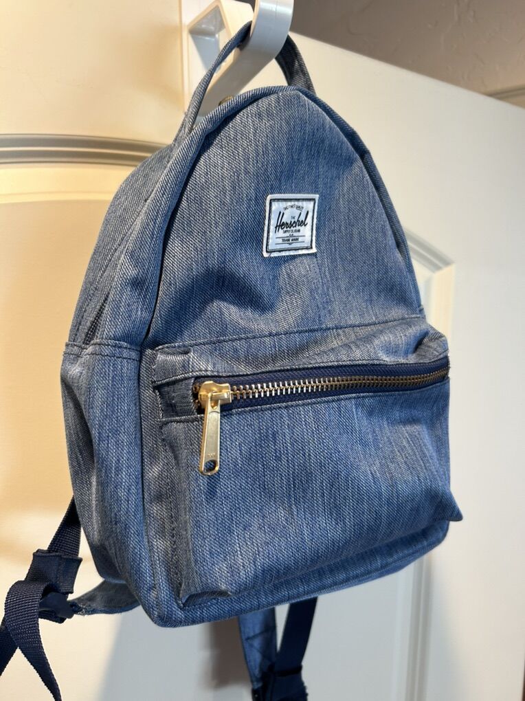 VenmoAn excellent like new condition, Herschel, backpack purse handbag in gorgeous, chambray denim blue color with signature, white and red striped interior. No flaws, stains or defects. Perfect for any occasion adjustable straps. Slightly smaller than a traditional school sized backpack. clean smoke free, cash or Venmo. Pick up in Alpine.