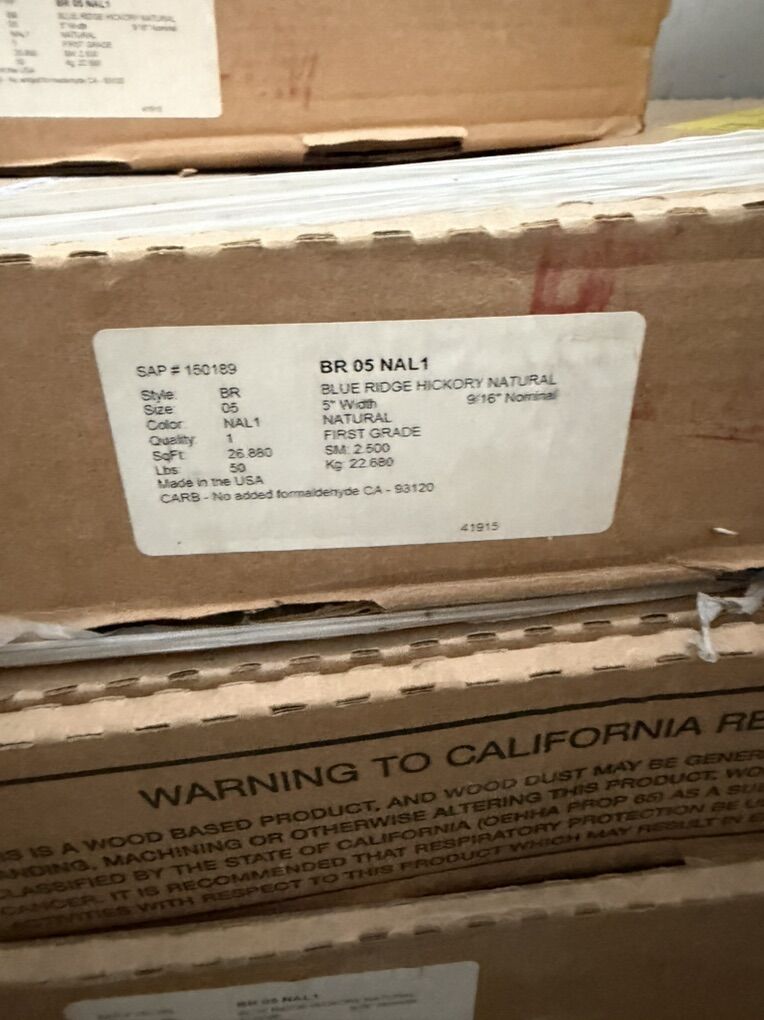 Venmo150 sq/ft of blue ridge hickory natural 9/16” thick tongue and groove flooring. New in boxes.