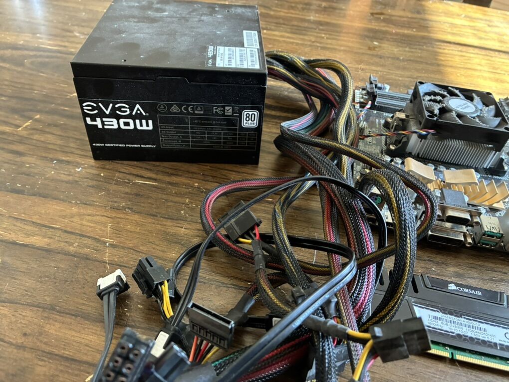 CashAppAs you can see there is no casing or tower, just the guts. Everything is there to get you started if you’re looking for a project. I got it on a storage auction and really don’t have a use for it. ASUS mother board Corsair Vengeance 8GB RAM ADATA SU800 SSD EVGA 430W power supply LG blue ray player/cd drive Western digital 250GB HDD