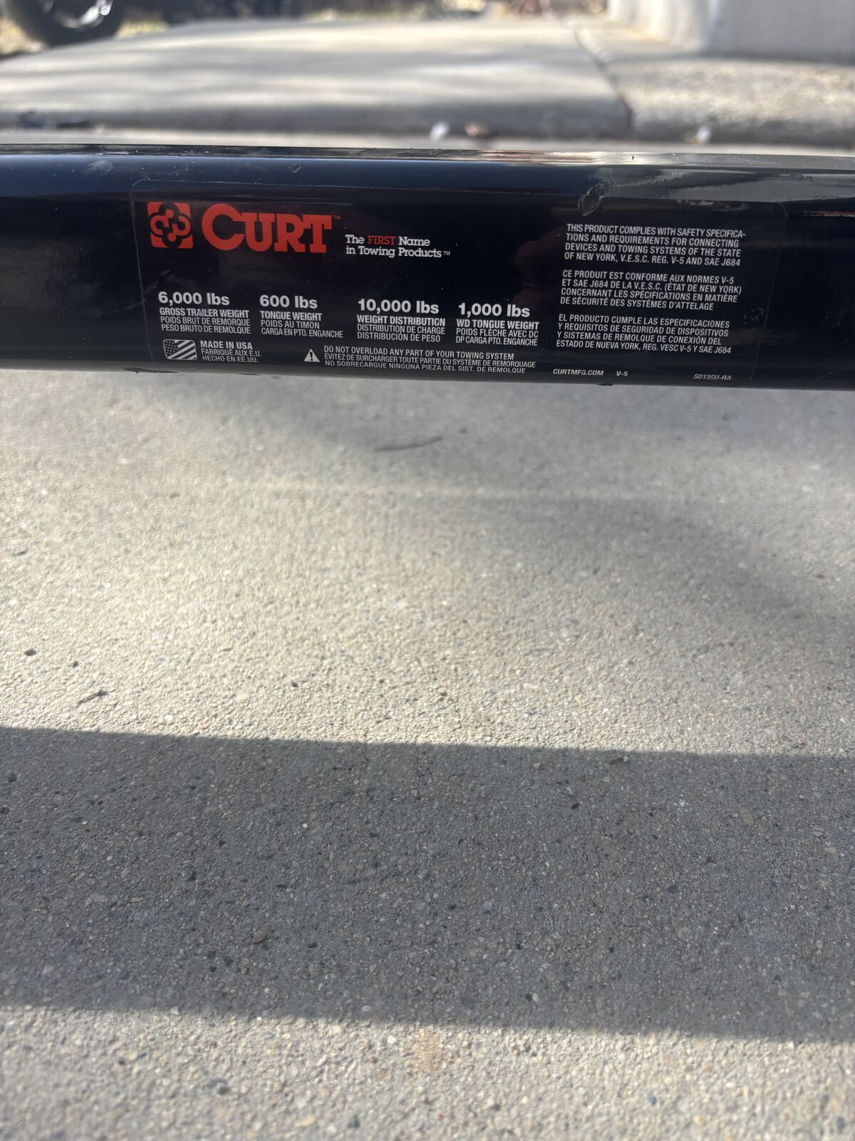 Venmonever used CURT tow package, 6000 lb trailer gross weight, 600lb tongue weight.