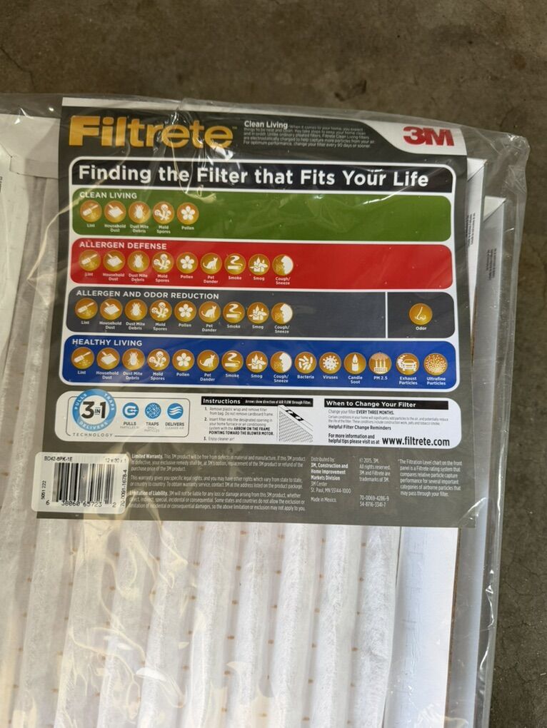 Filtrete 12x30x1 Air Filter, MPR 300, MERV 5, Clean Living Basic Dust 3-Month Pleated 1-Inch Air Filters, 6 pack