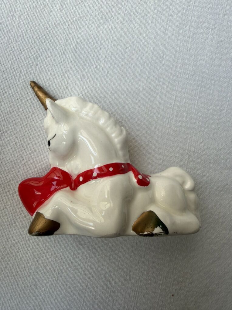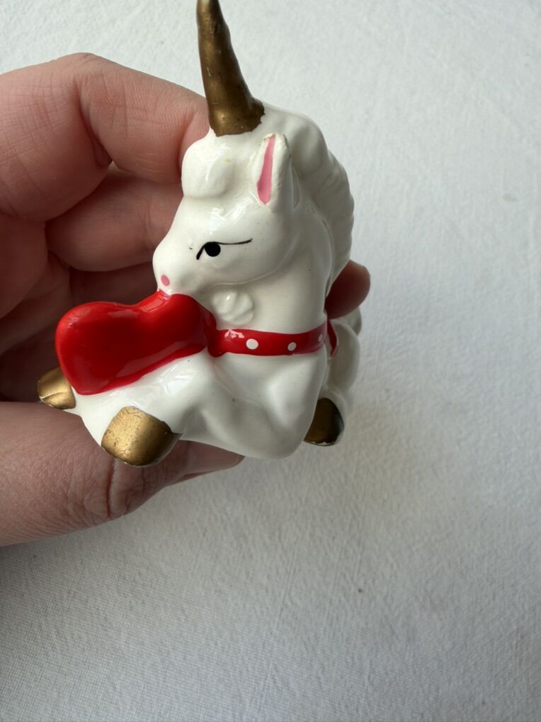 CashAppBeautiful vintage white and red ceramic unicorn figurine in great condition. Would make a sweet nostalgic Valentines Day gift, or a wonderful addition to figurine or unicorn collections! Some of the original sticker on bottom is still intact and reads, “1981 Made in Taiwan.”