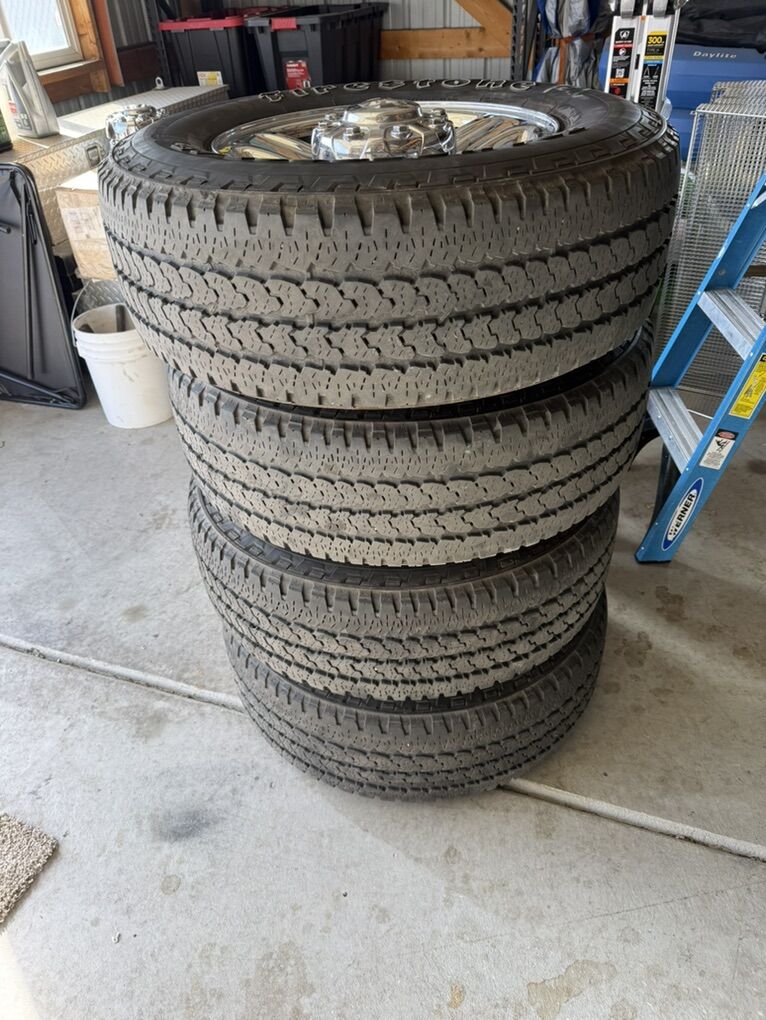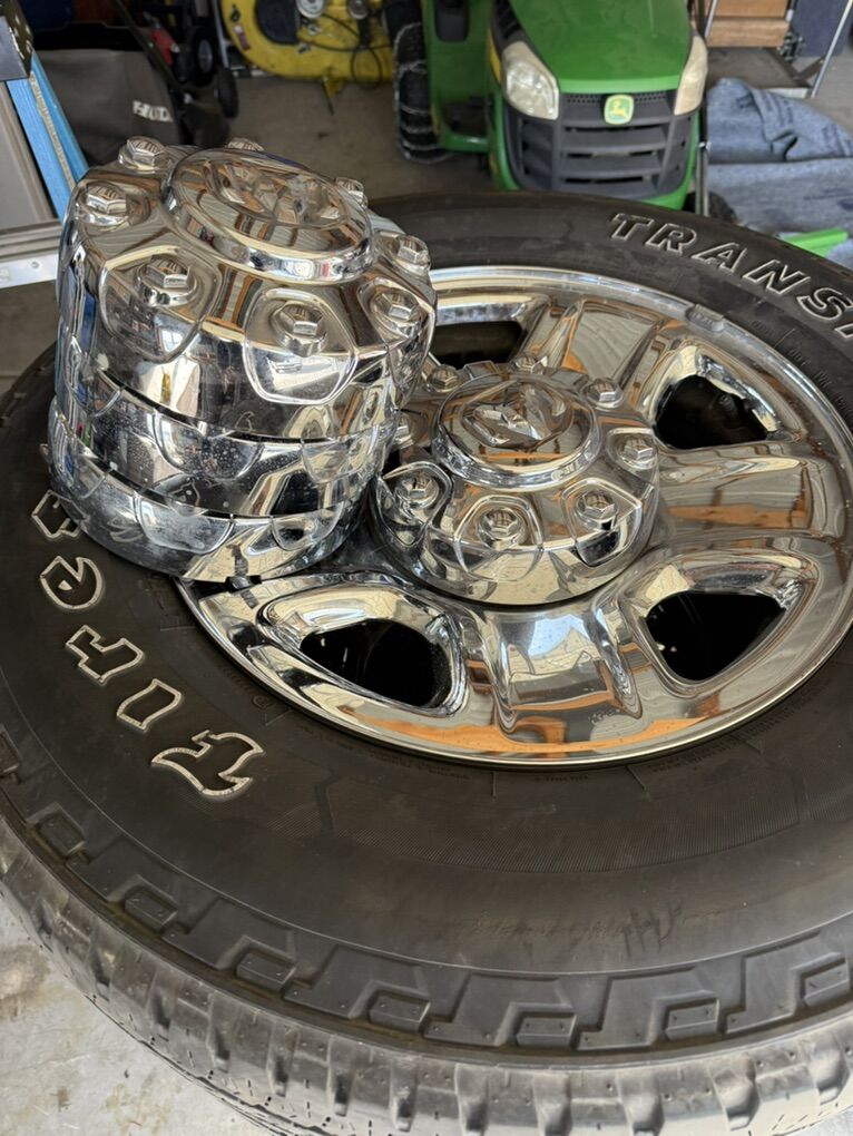 Stock wheels and tire off 2024 ram 2500 275/70/18 tires have 40k highway miles on them . Comes with all 4 center caps and lug nuts.