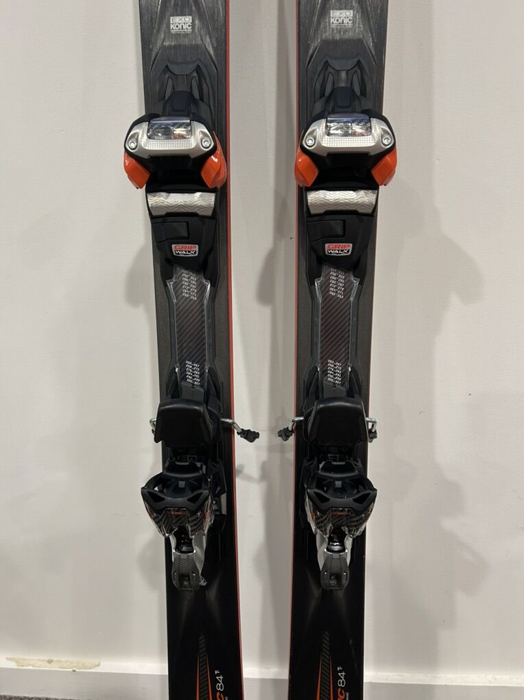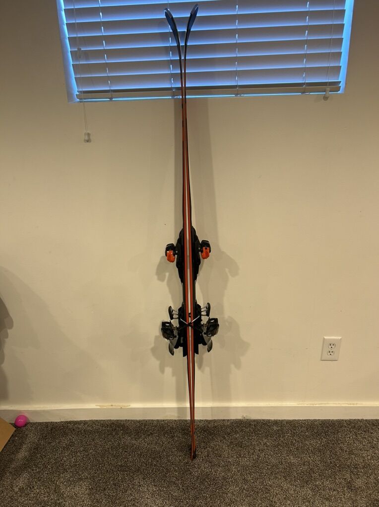 This ski is groomer machine. Yet can click the whole mountain. It’s in excellent shape almost new. Has demo bindings that are grip walk compatible.