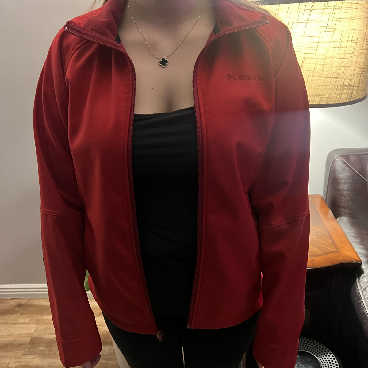 ApplePayFor sale is this good condition/gentle used red Columbia jacket. It is a full-zip softshell. With all the quality you’d expect from Columbia. Can be worn on it’s own or layered.