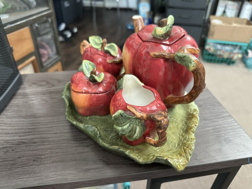 VenmoCute country apple style tea set. Great for kitchen decor or to add to a collection. Never used for tea.