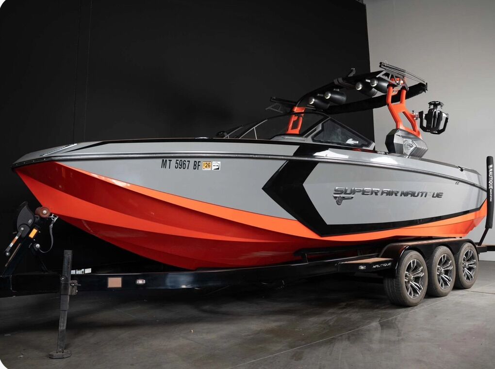 This is our beautiful 2019 Super Air Nautique G25. We have never had any issues with this boat. The 25 feet length is the perfect length for family and friends. Nautique is the top of the line in the boating industry has an amazing surf wave also has a great ride in choppy water. This boat has the upgraded 550 hp motor also has the clamping surfboard racks and the upgraded custom cover with the power folding tower. Shoot me an offer.