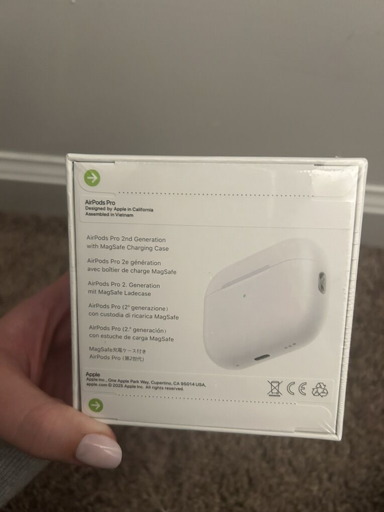 VenmoNew Apple AirPods Pro 2nd Generation. Comes with MagSafe Charging Case. Serial number JC39N4CQ37. Purchased April 5, 2025. Limited warranty expires April 4, 2026.