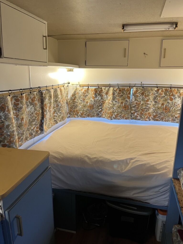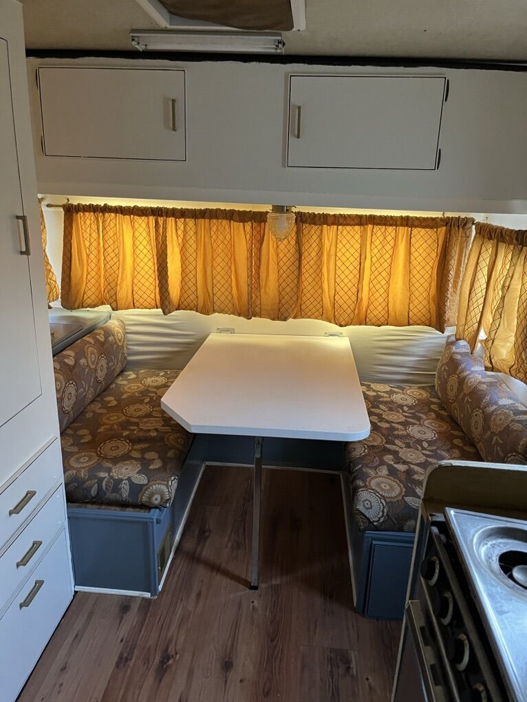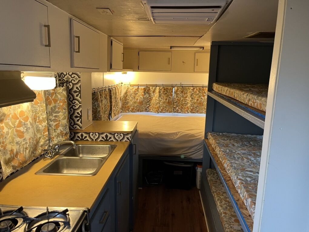 1970’s travel trailer remodeled with bunk and no bathroom. It’s a fixer-upper with some water damage, but tons of potential for the right person. Sleeps 7 3 bunks + front bed + dinette No bathroom Original cabinetry Tandem axle with spare tire No title, but I have paperwork from the original owners and will provide a bill of sale. Perfect project camper, hunting rig, or remodel base.