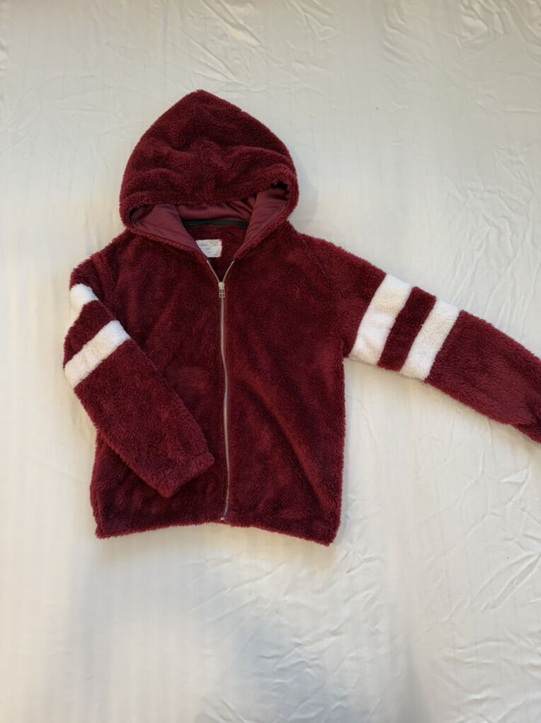 Sherpa Jacket Girls L (14-16) $7.00 Girls marroon sherpa jacket. Super soft fluff inside and out and not bulky!