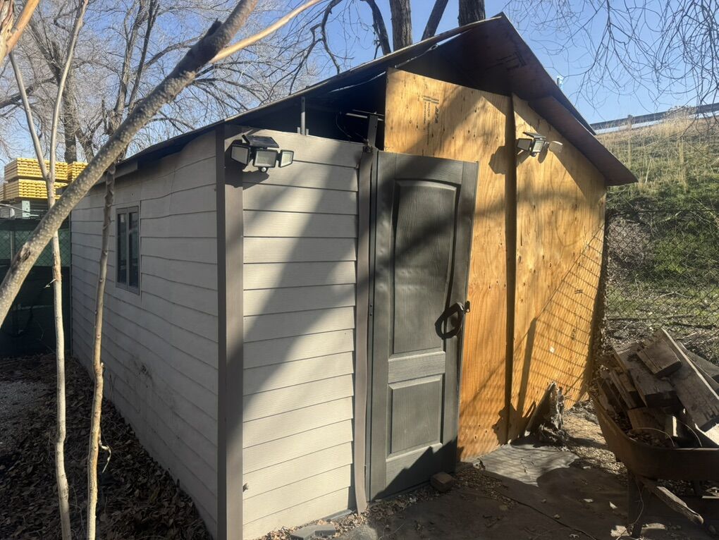 Some front corner damage, but large part of shed could be used to make a nice 11’ x 8’ quite easily. Sturdy with two windows, two skylights, and has a floor. Only $ Free! come and take it home. In Salt Lake City Easy to assemble/disassemble Must be removed from property by March 1st.
